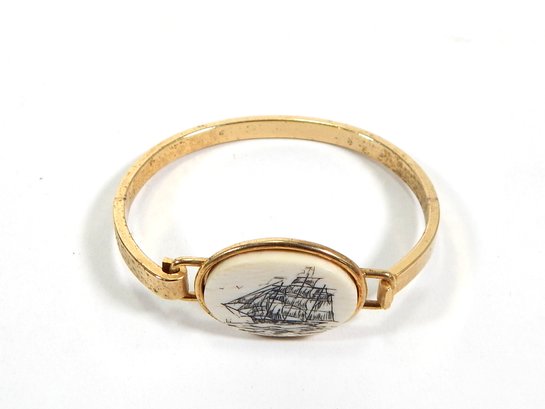 Gold tone scrimshaw bracelet.