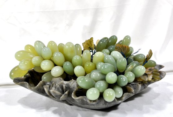 Awesome jade grape clusters on carved stone tray.