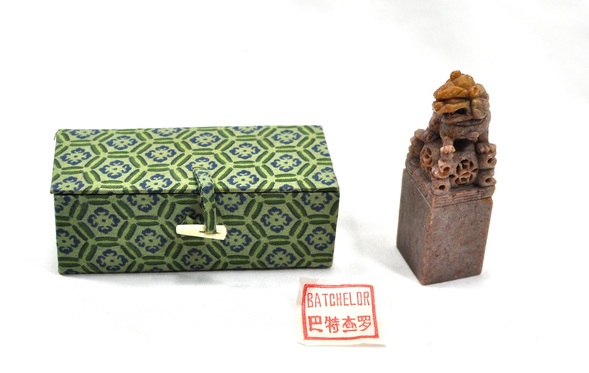 Vintage Carved Stone Foo Dog Seal With Original Box.