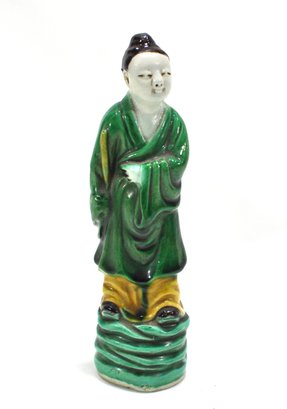 Vintage hand painted glazed porcelain figurine of Chinese man.