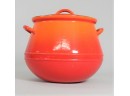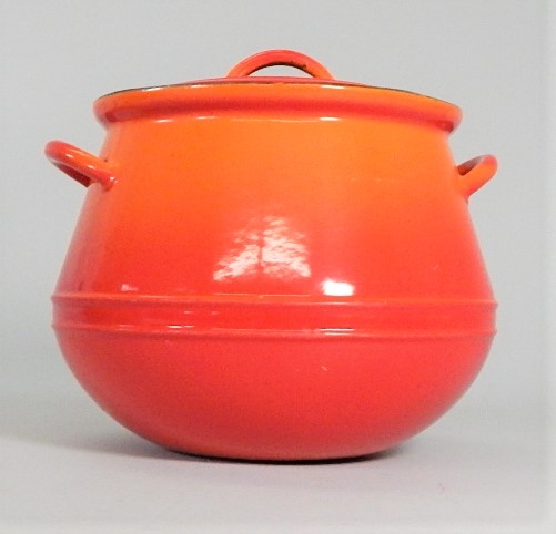 Vintage Lidded Descoware Orange enamel cast iron bean pot #5. Made in Belgium.