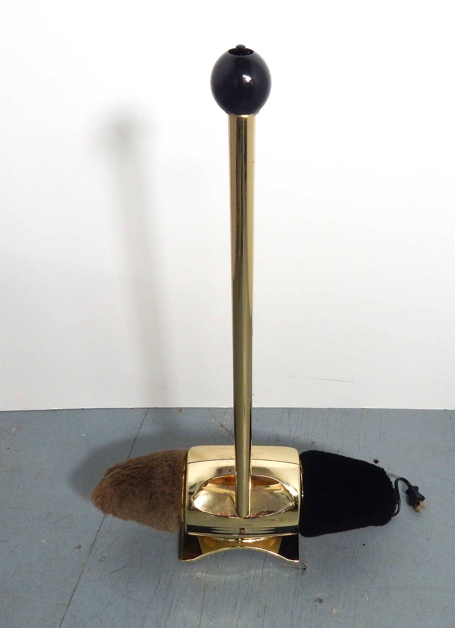 Shoeshine machine that buffs your shoes & boots effortlessly. A few discoloration marks, otherwise in very good used condition. Measures: 29.5"h x 18"w.