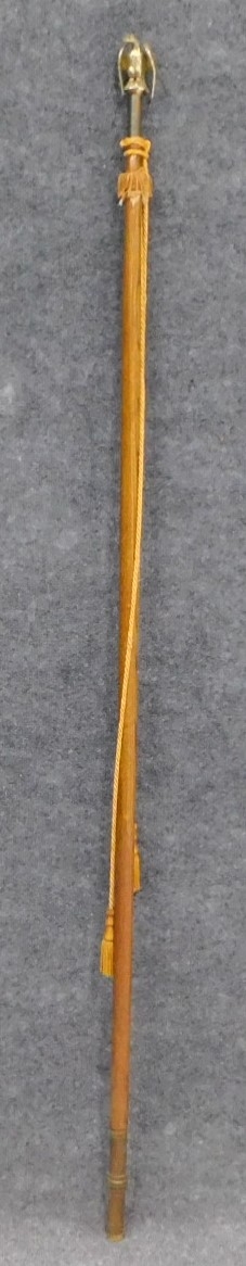 Flagpole has leather straps. 60" long. Brass eagle topper. Gold tassels
