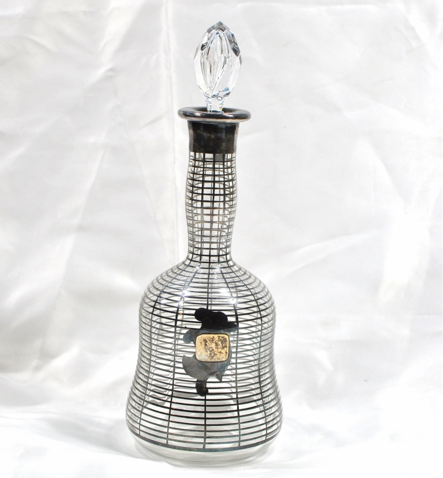 Nice vintage Glass Sterling Silver Overlay Decanter with cut class stopper.