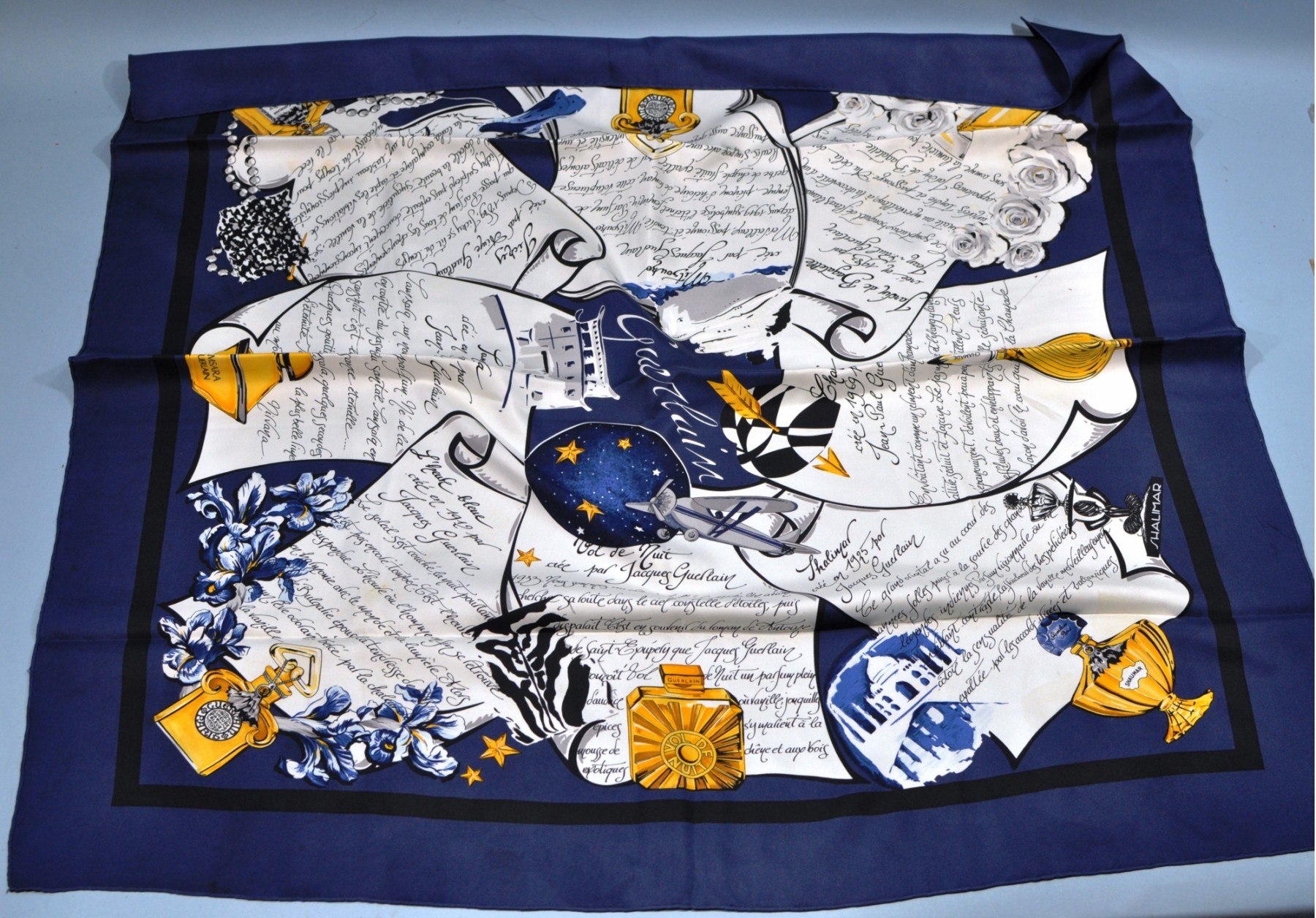 Authentic vintage French hand hemmed silk scarf by the House of Guerlain.