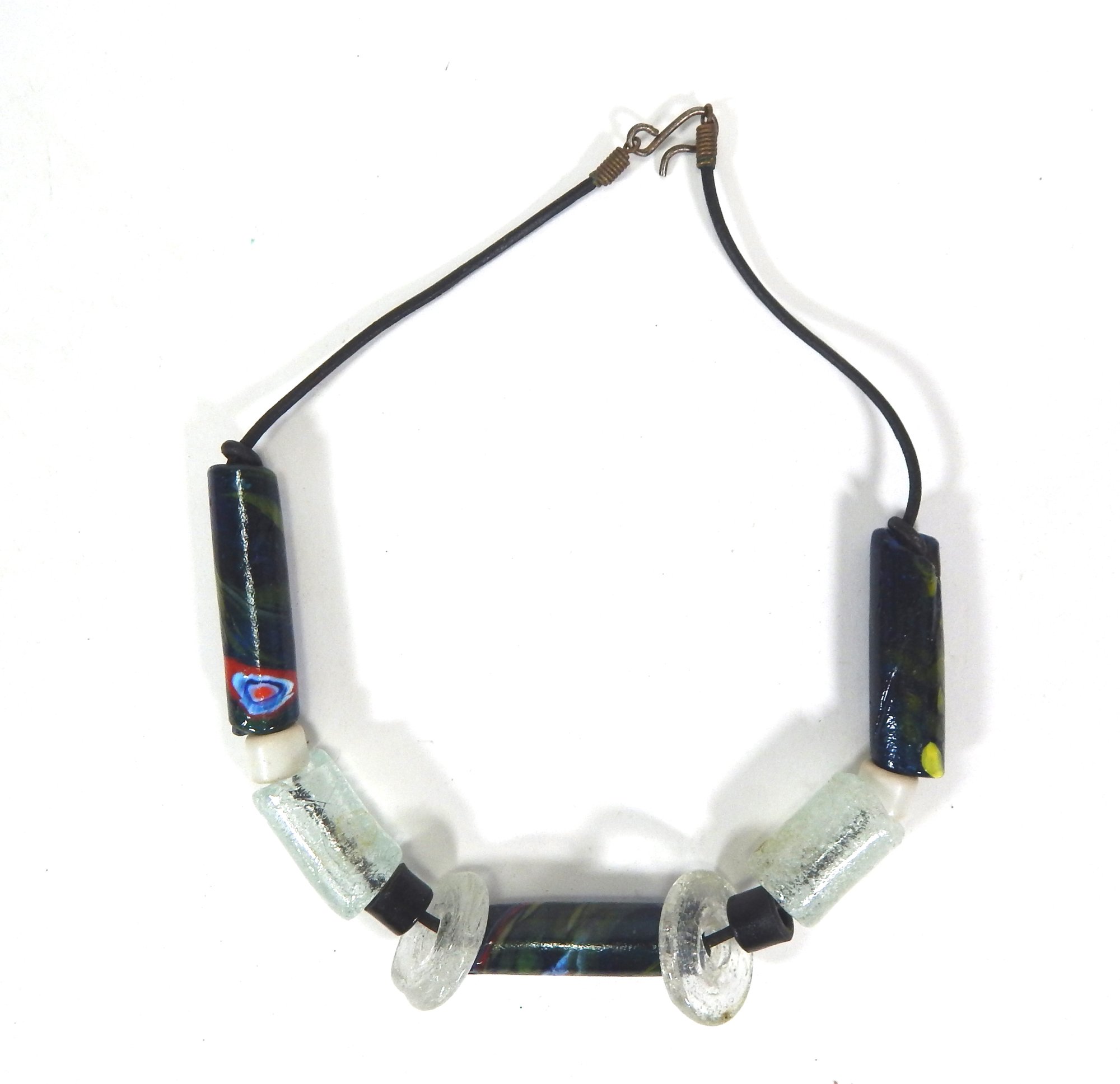 Vintage art glass necklace with some long tube beads.