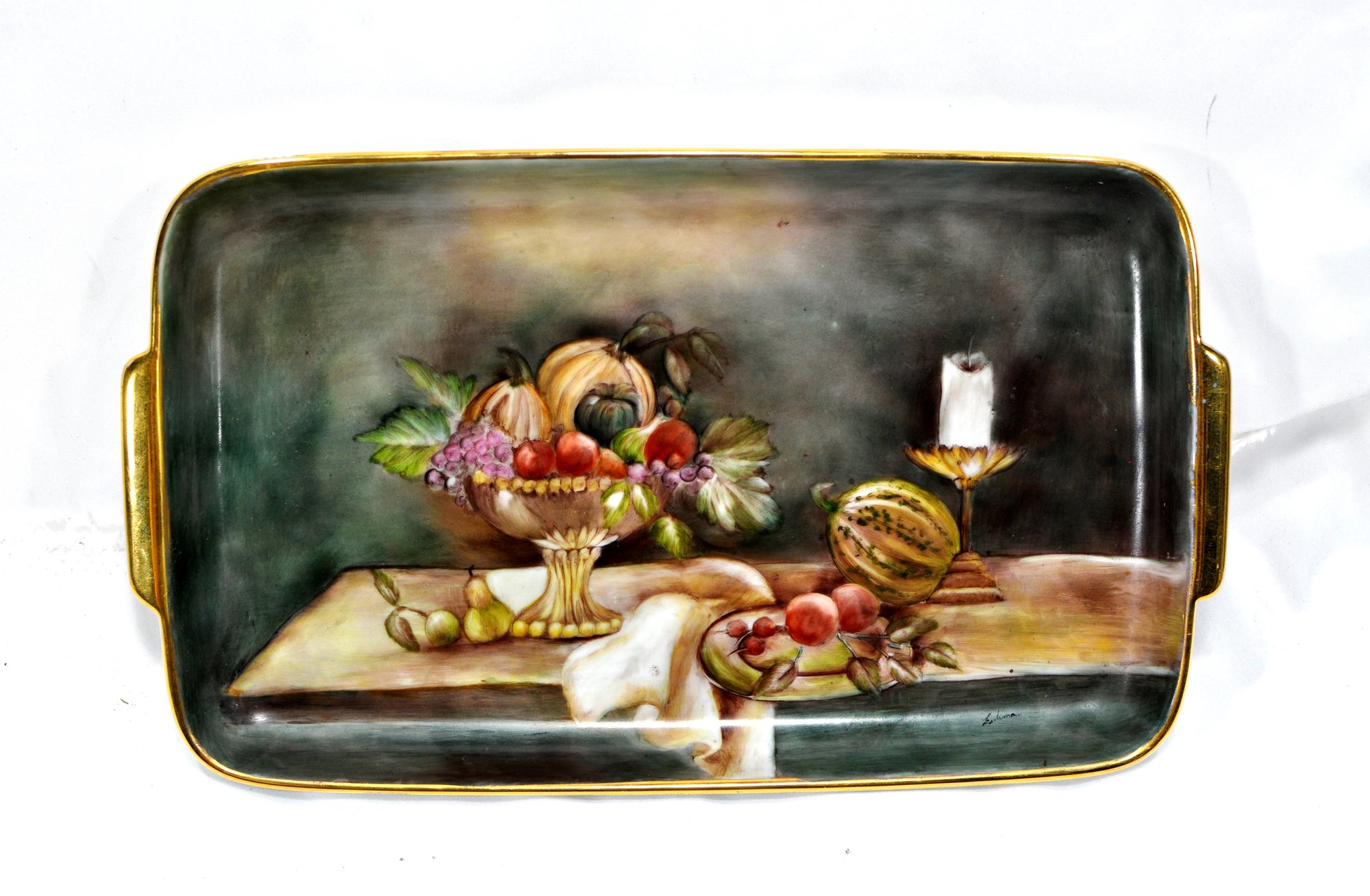 Hand painted fruit still life porcelain tray, signed by the artist.