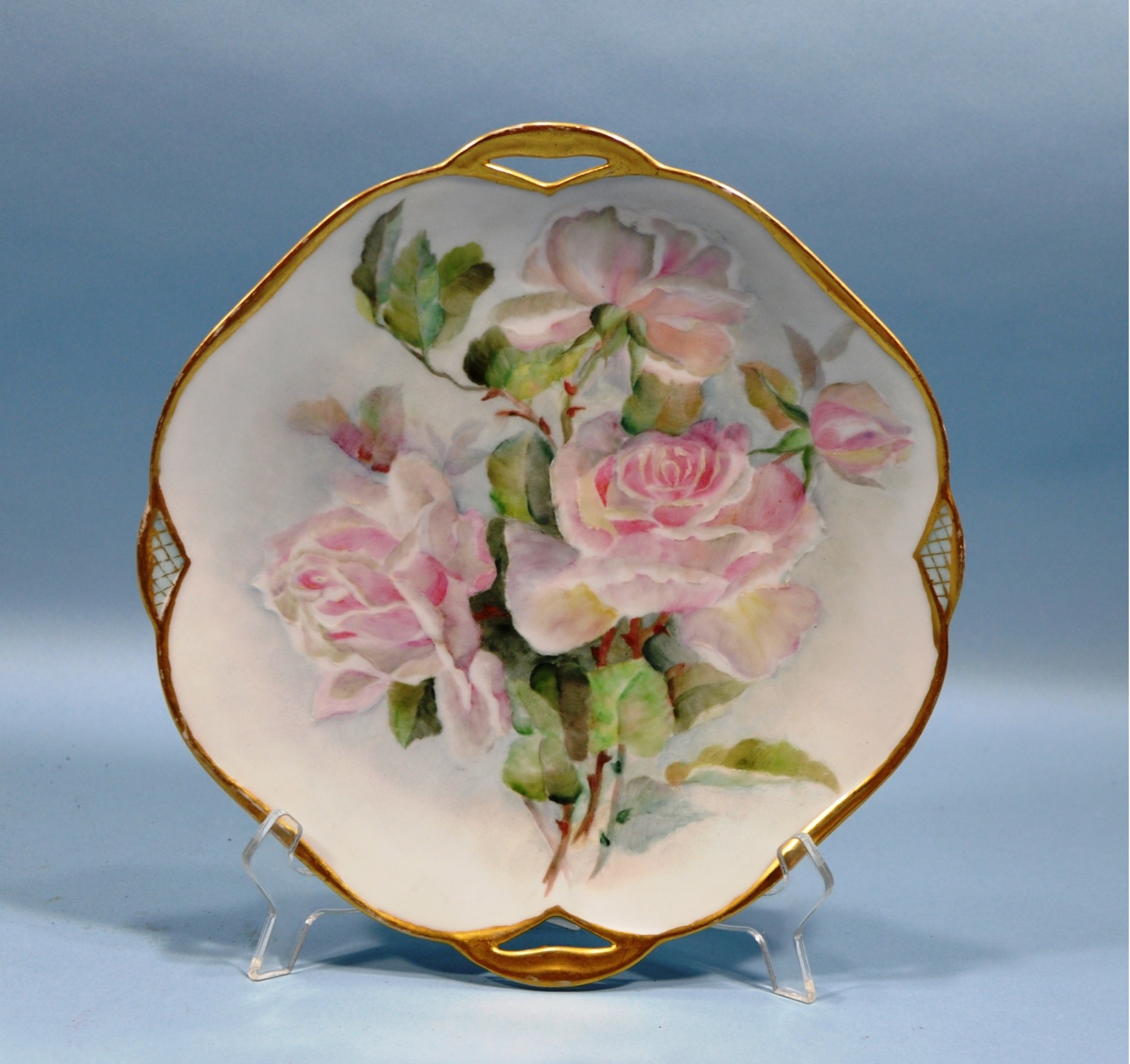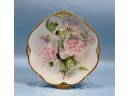 Hand painted roses and gild porcelain tray with handles,