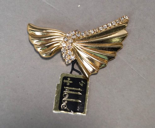 Pretty gold tone pin made and signed by Hobe. There is an item number on the tag that reads AR008P. Fan design with rhinestones. Pin is 2" long. Clasp works fine. Great condition. Shipping is available.