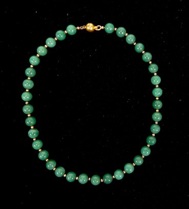 Beautiful jade choker necklace with gold spacers.