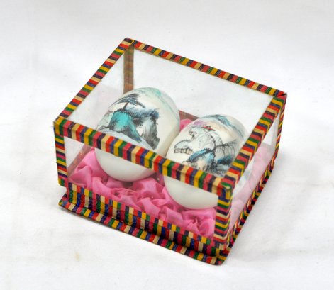 Beautifully hand painted eggs with Oriental landscapes.