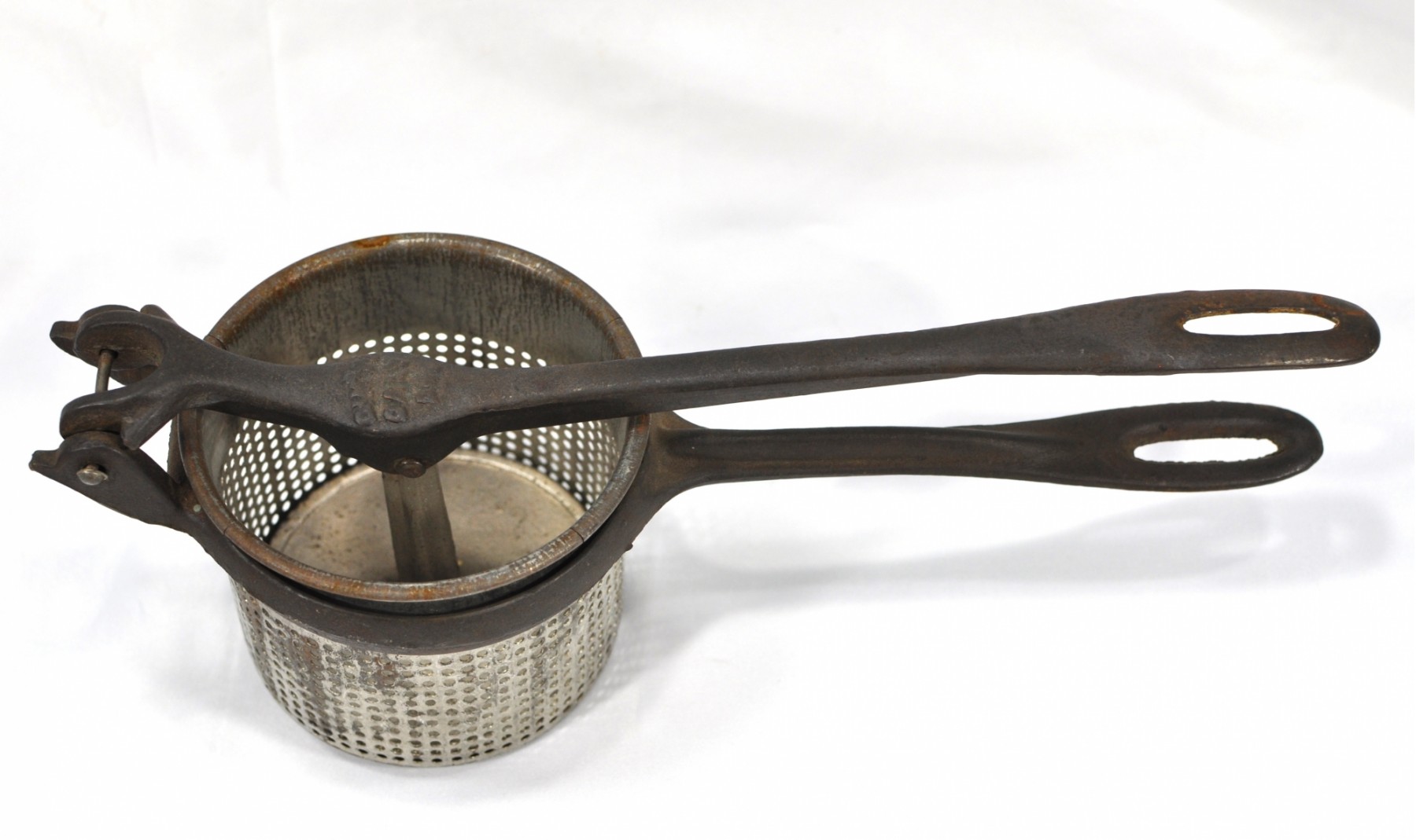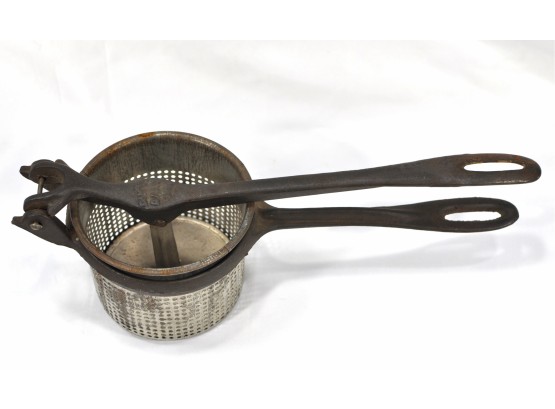 Vintage potato ricer, 11" long.