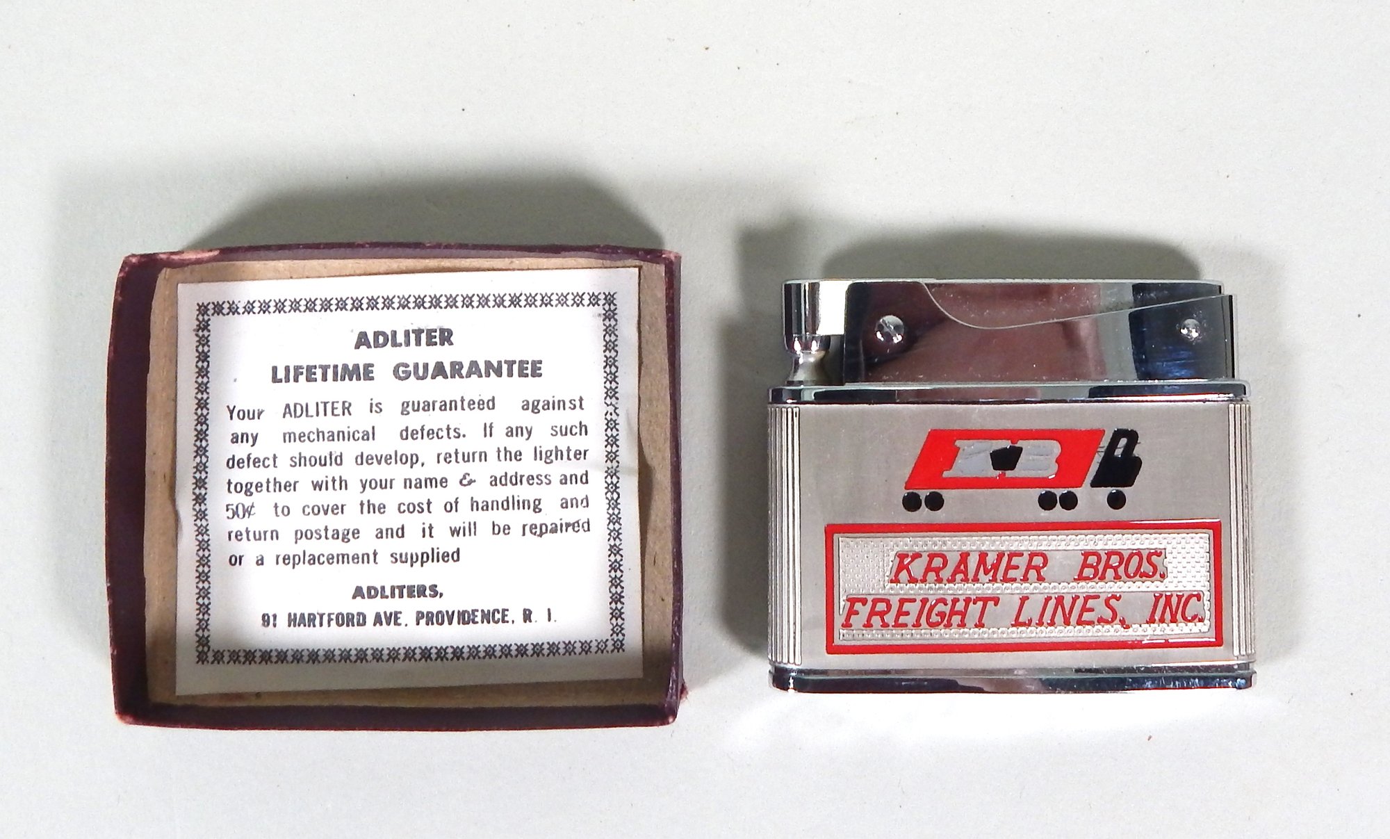 Unused collectible advertising lighter with box and paper.