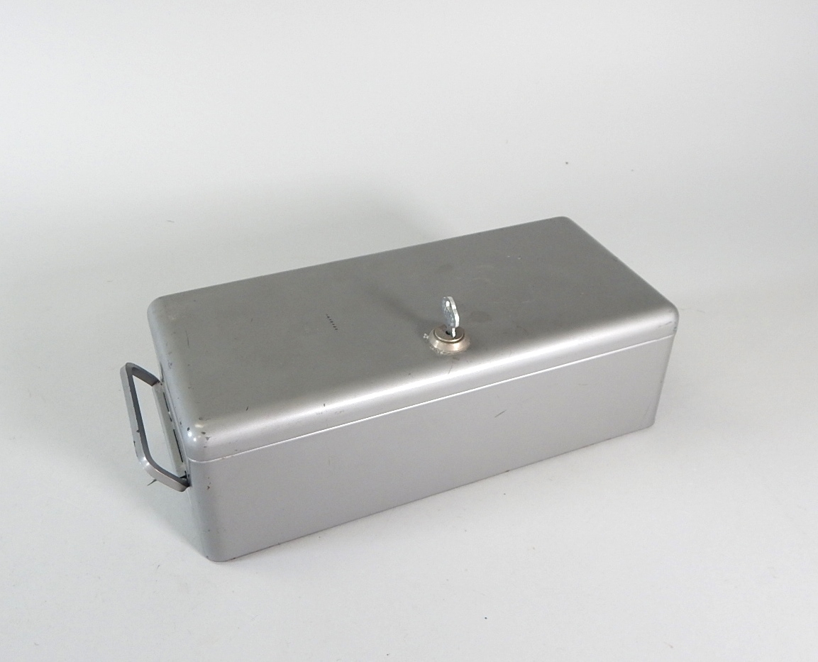 Locking metal cash box or safe.