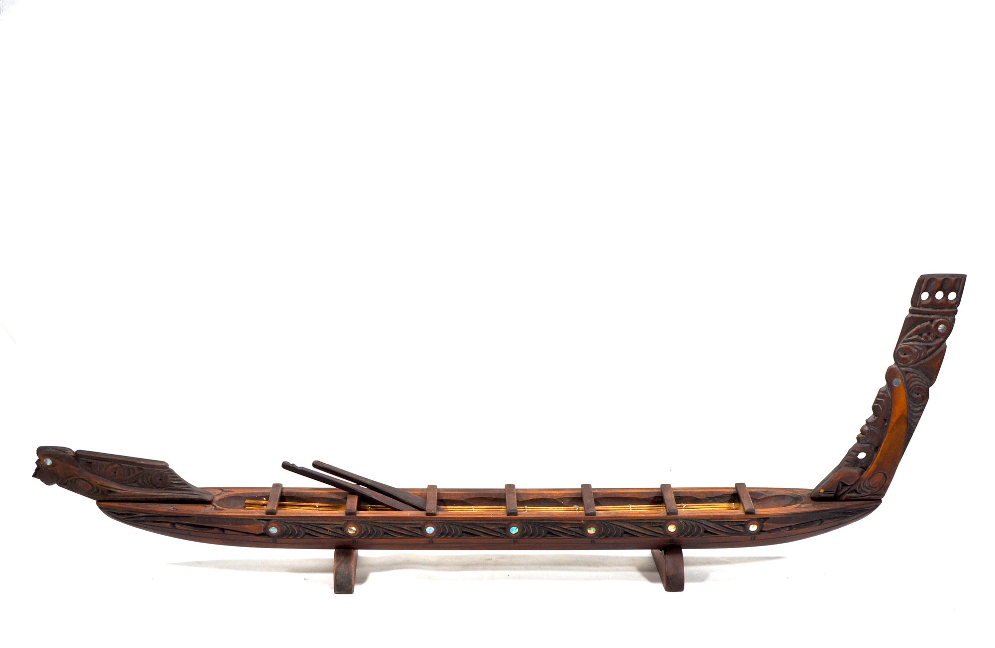 Beautifully carved from exotic wood and inlaid with mother of pearl.
