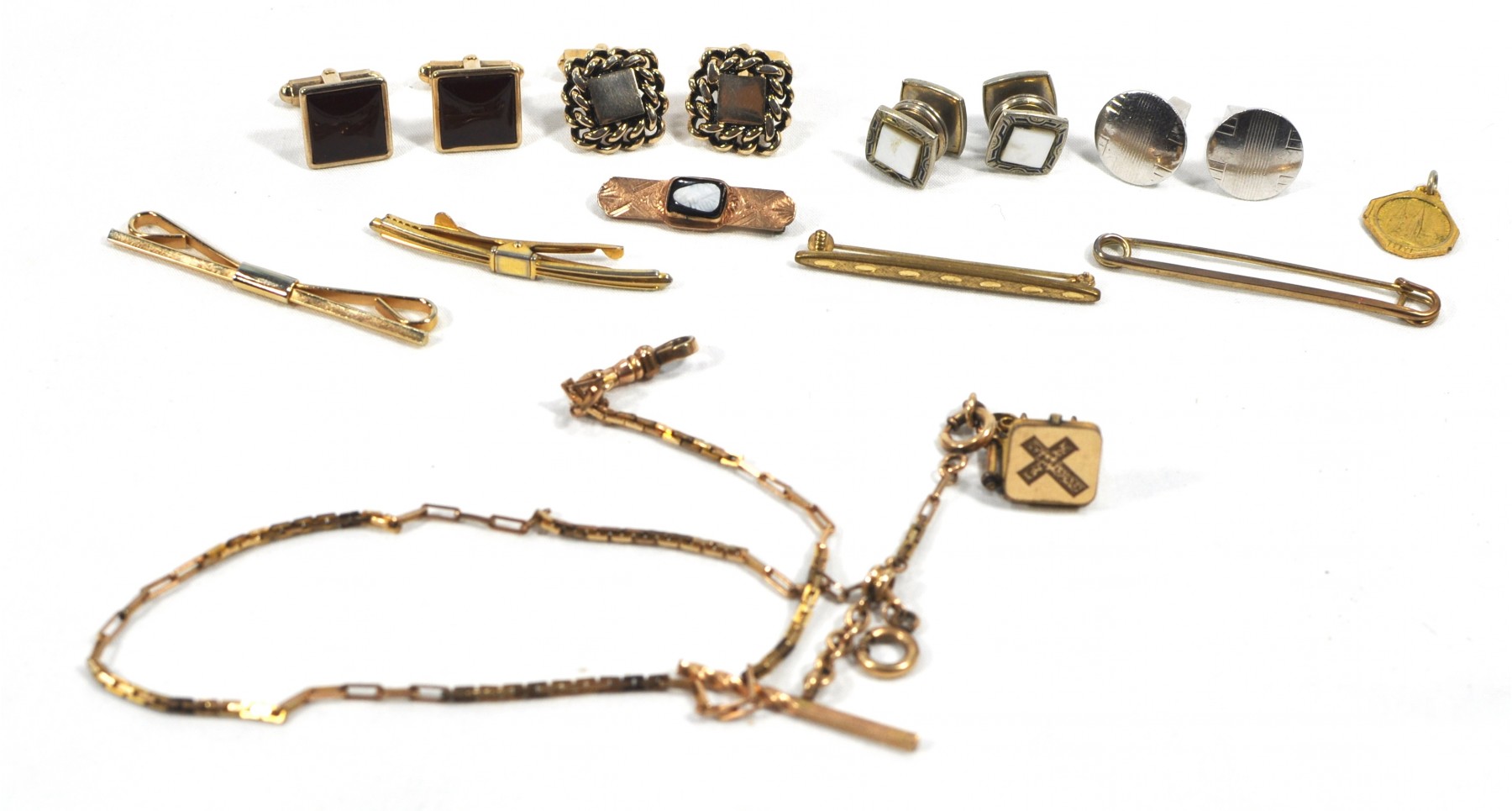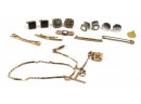 Vintage Men's Jewelry Lot- Cufflinks, Tie Bars, Pocket Watch Chain with locket.