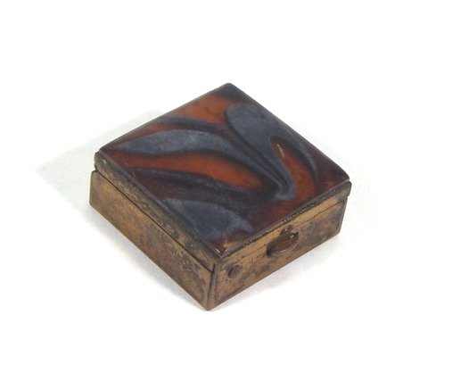 Vintage brass pill box with enameled lid.