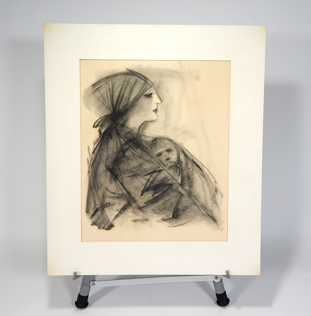 Matted charcoal drawing, illegibly signed.