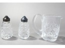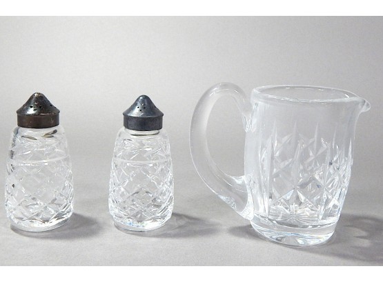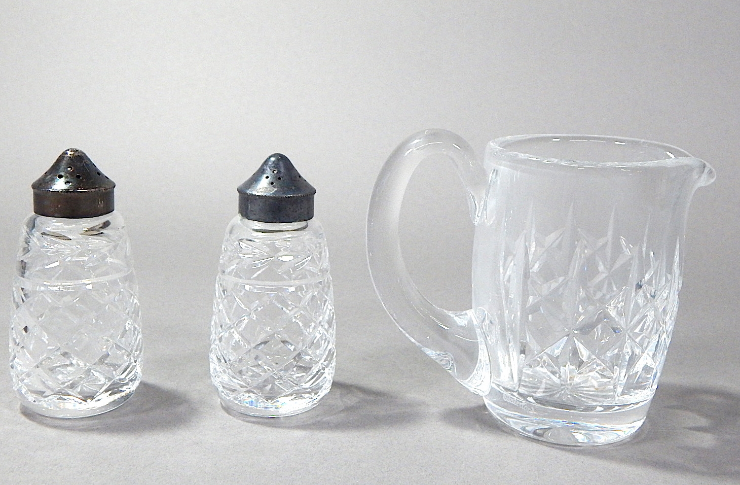 Original Waterford crystal salt, pepper shakers and a creamer.