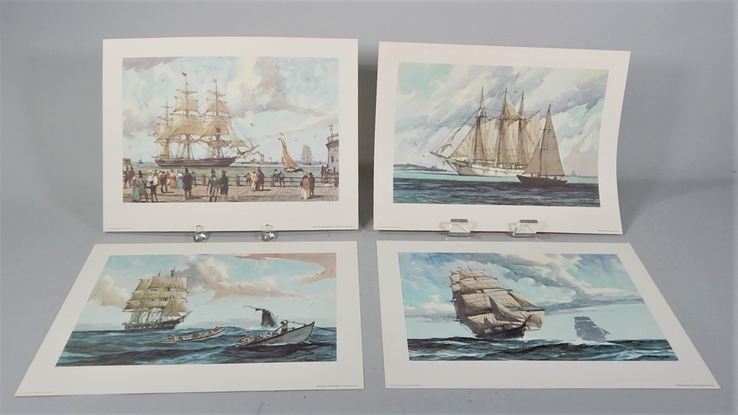 Listed is a portfolio of American sailing ship prints by American artist Gordon Grant issued by The Seaman's Bank of New York in the 1960's. There are 4 prints each measuring 18" x 12", all suitable for framing. In very good condition, see photos for details.