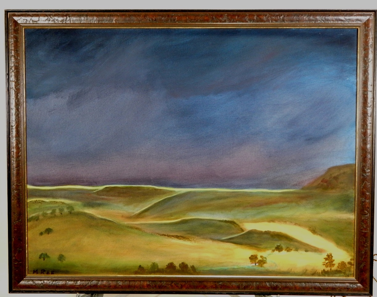 Framed oil painting on canvas.