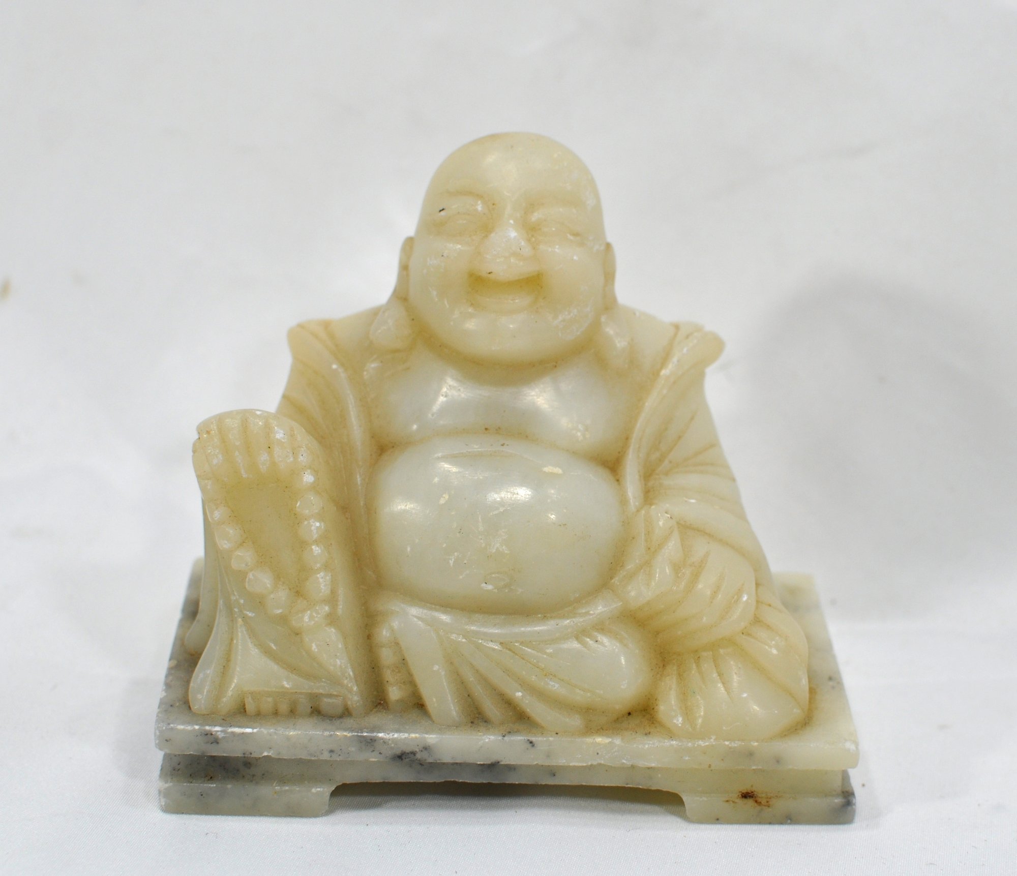 Carved soapstone laughing Buddha figure.