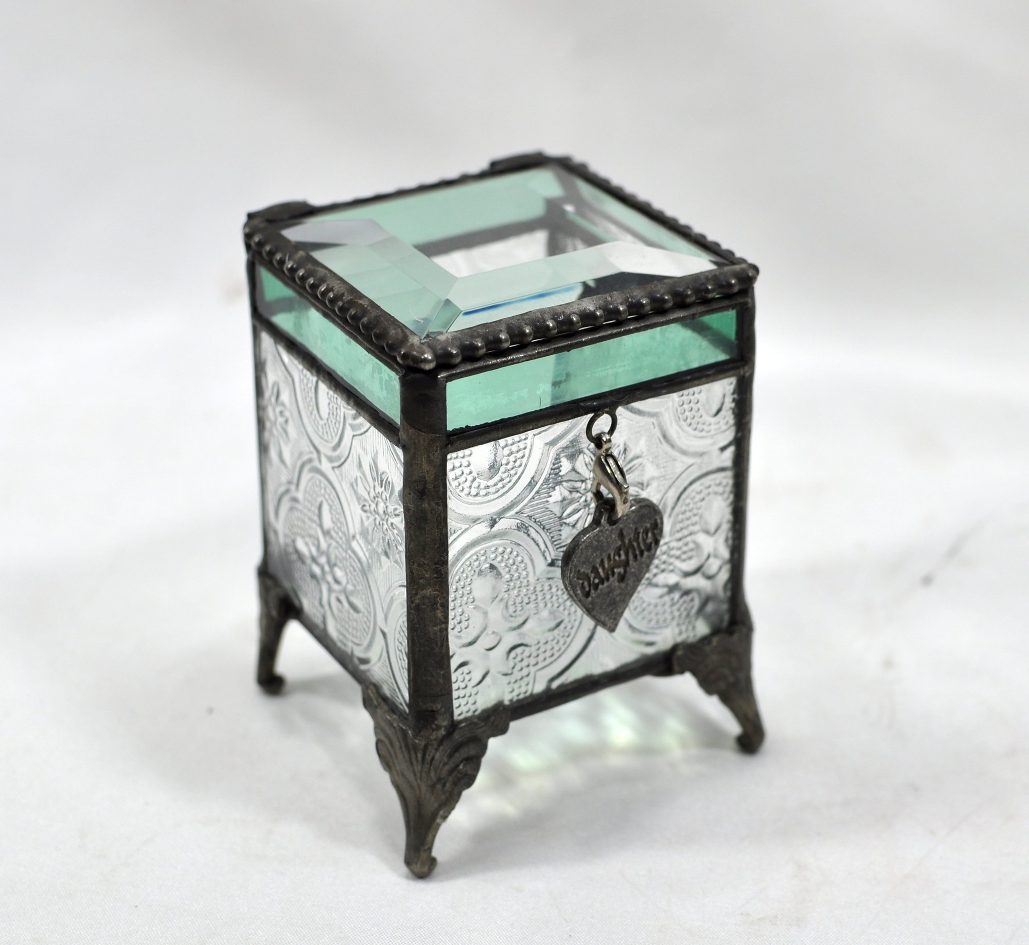Cute little stained and faceted glass treasure box with "Daughter" charm.