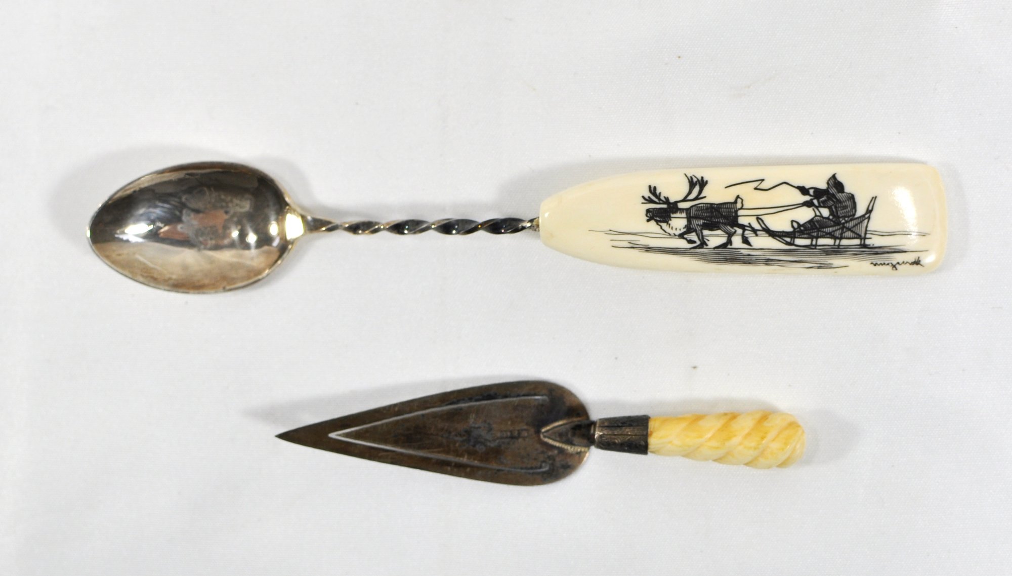 Sterling silver and bone spoon and bookmark.