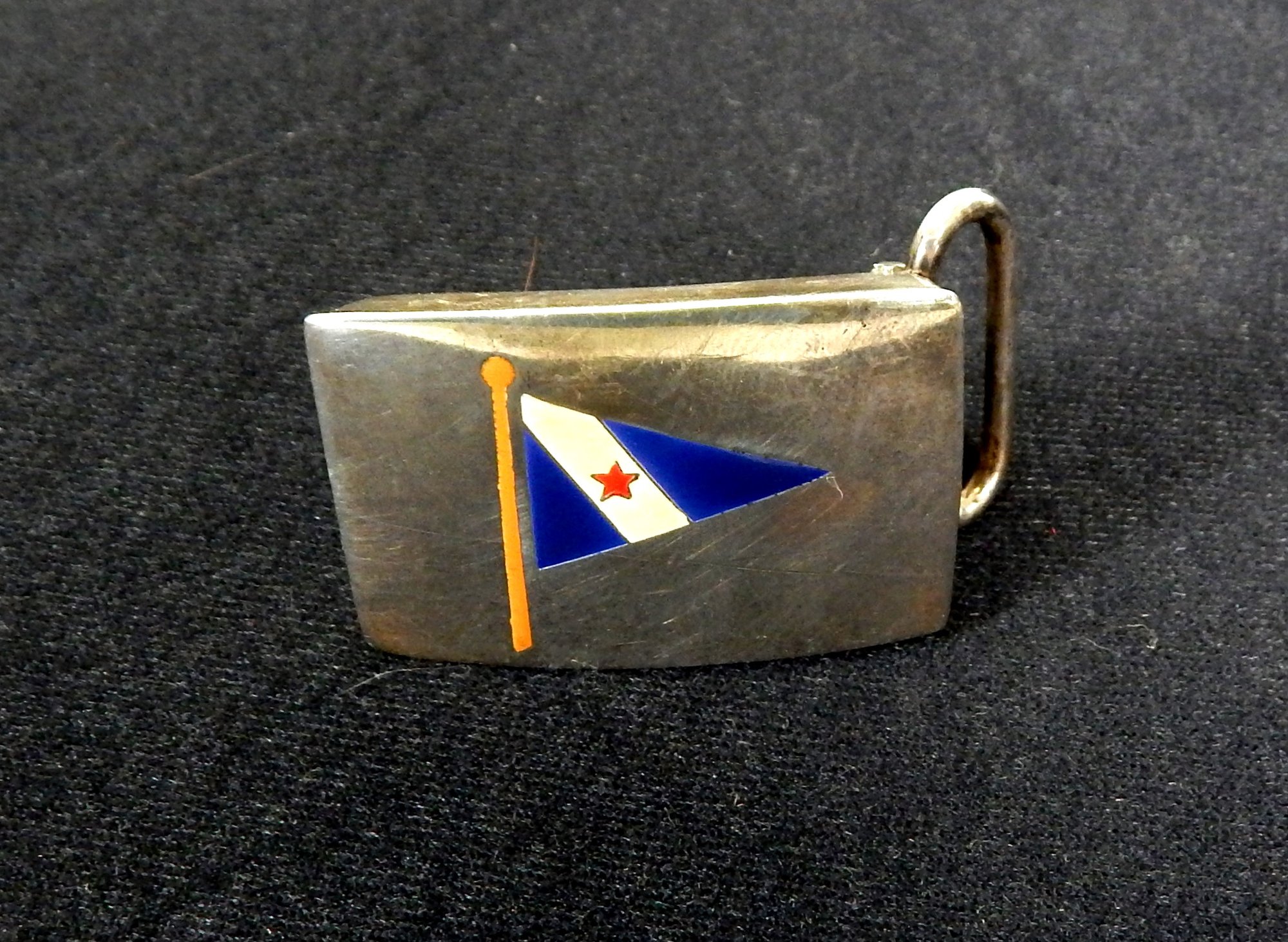 Enameled sterling silver boat buckle.