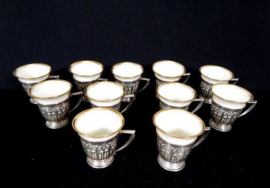 Set of eleven demitasse cups with their sterling holders.