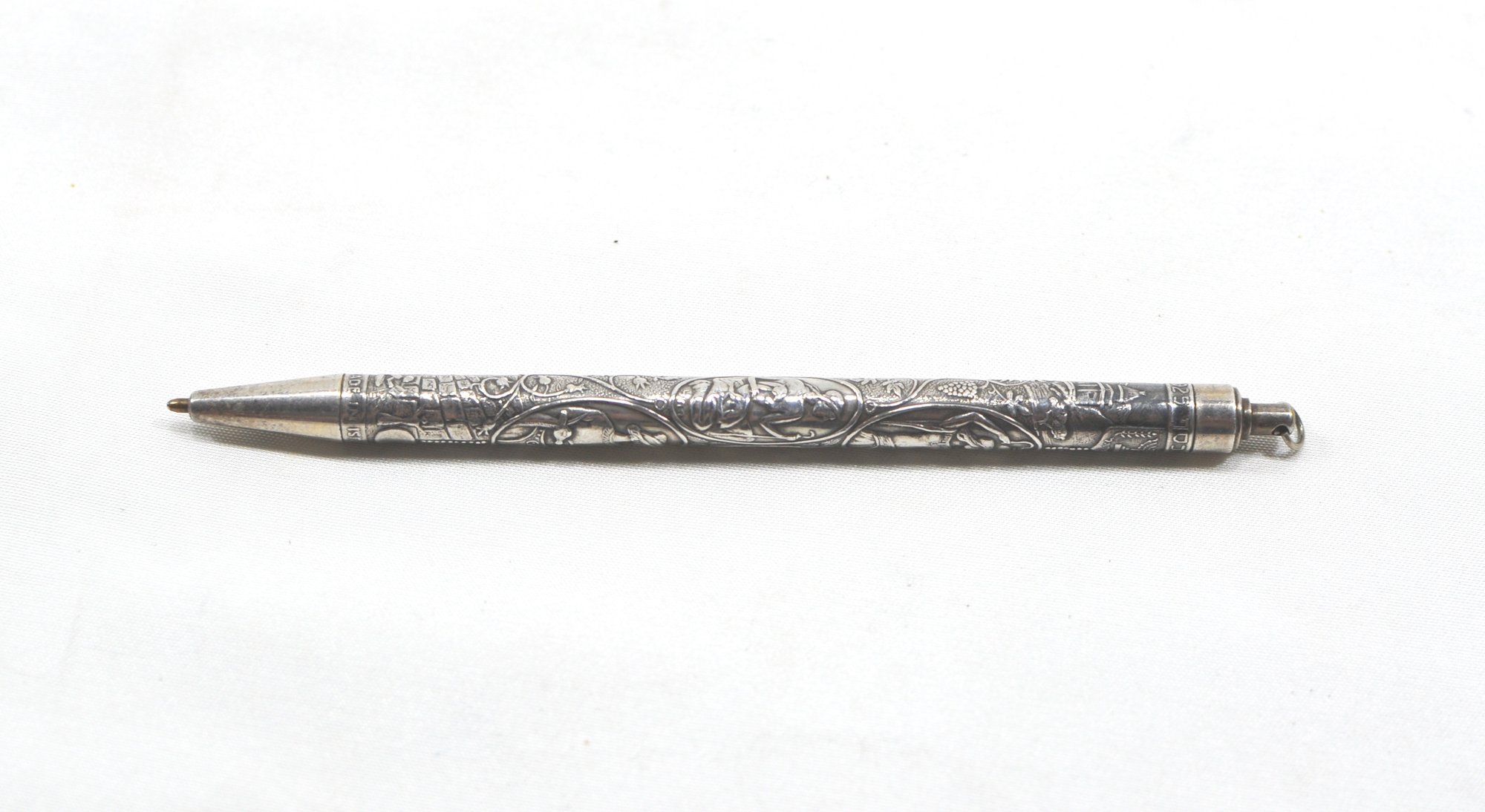 Sterling silver repousse ball pen.