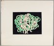 Vintage mixed media painting of figures and snakes, titled "Freud's Belt Buckle".