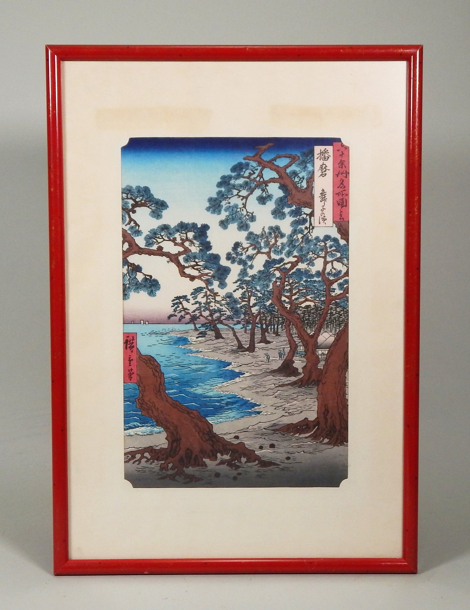 Vintage Utagawa Hiroshige Harima Province Maiko beach framed print.