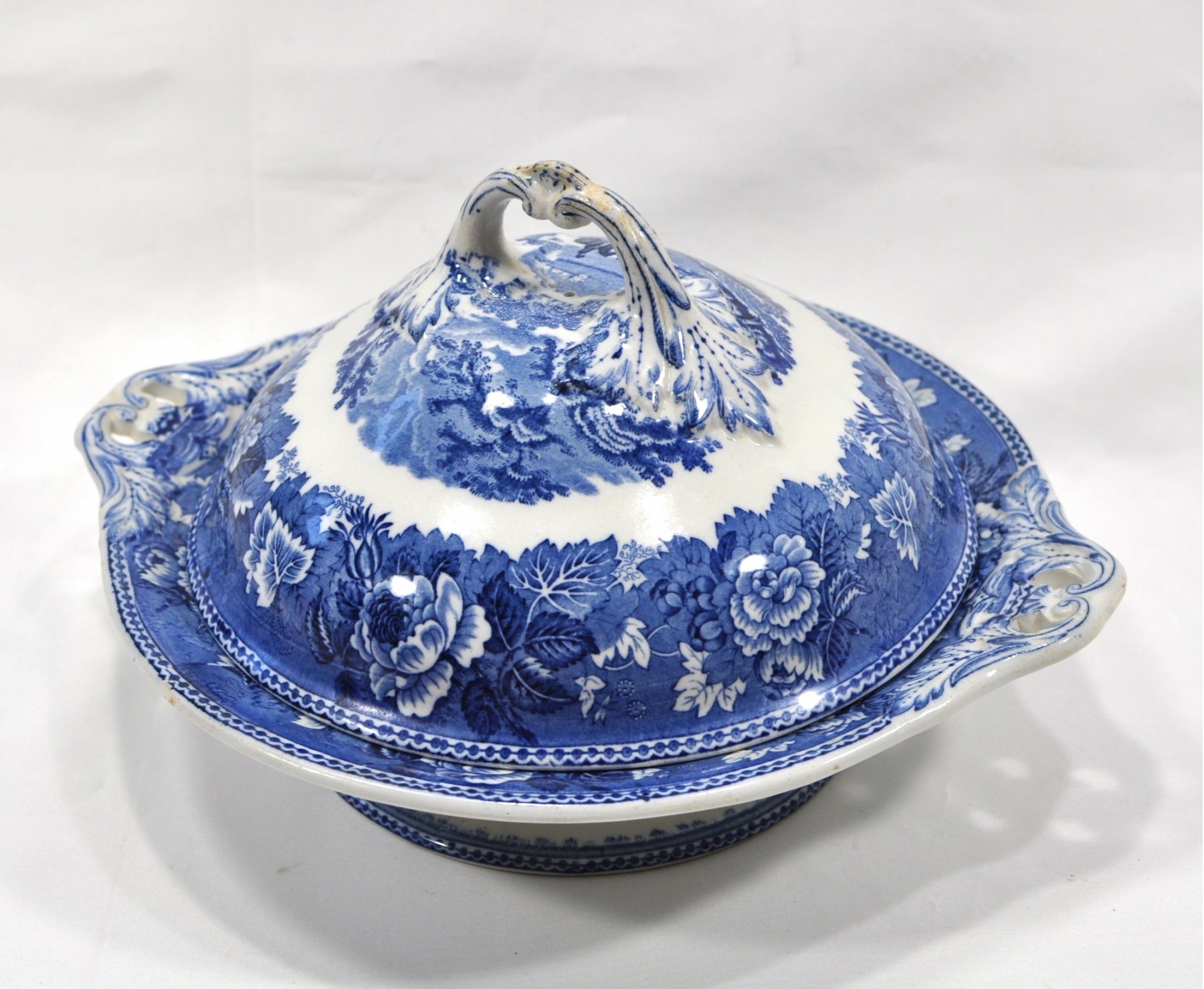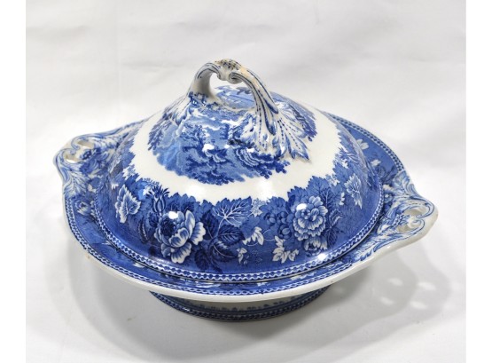 Beautiful blue & white covered porcelain dish, made in England, marked on bottom.