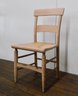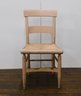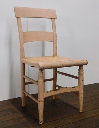 This is a vintage wooden ladder-back chair featuring a rush seat. The chair is constructed with a classic farmhouse-style design, showcasing simplicity and functionality.