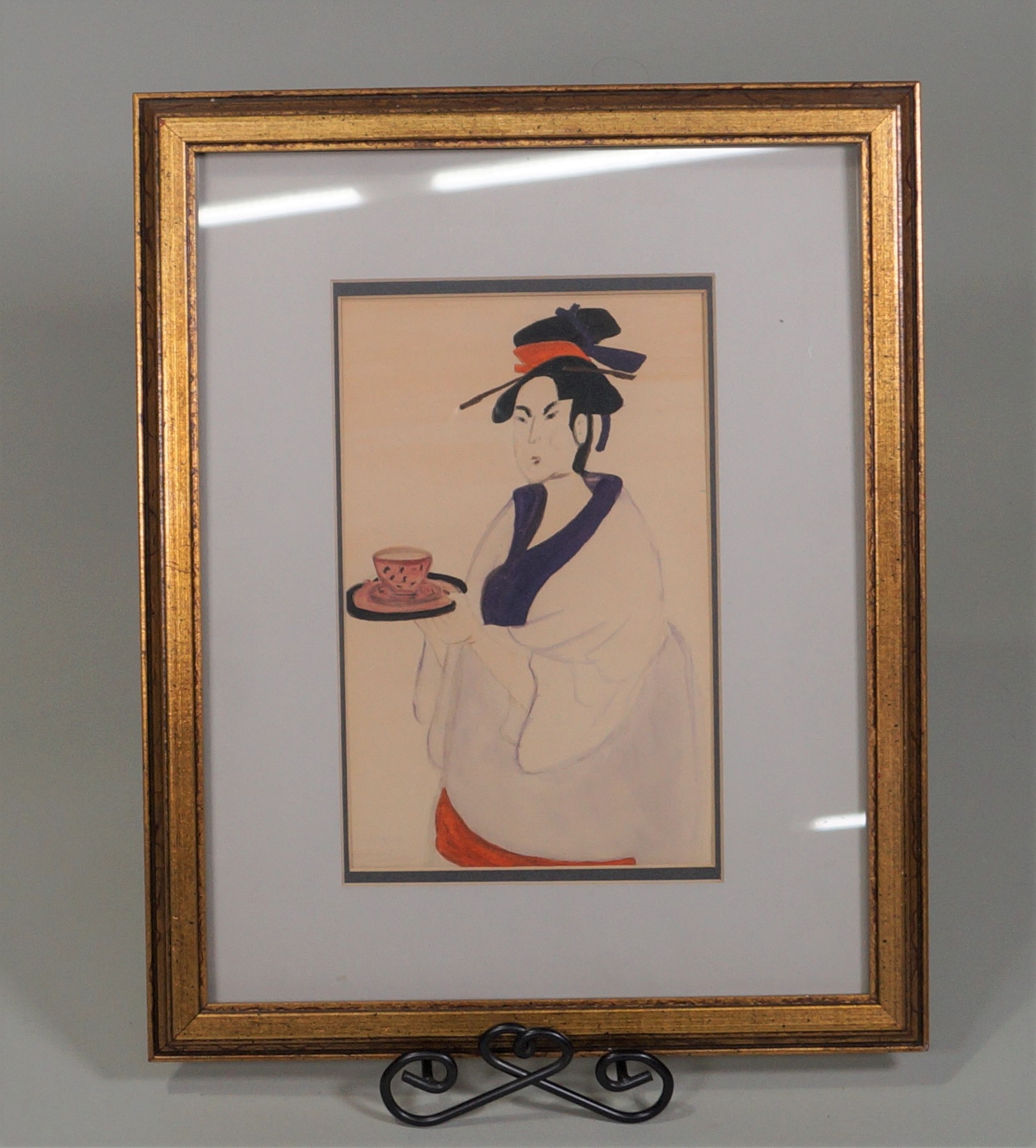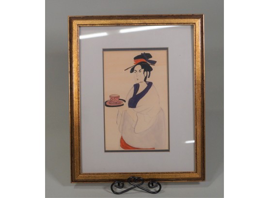 Pretty watercolor. The back of the frame is held on with tape. You may want to reframe. Picture itself is great.