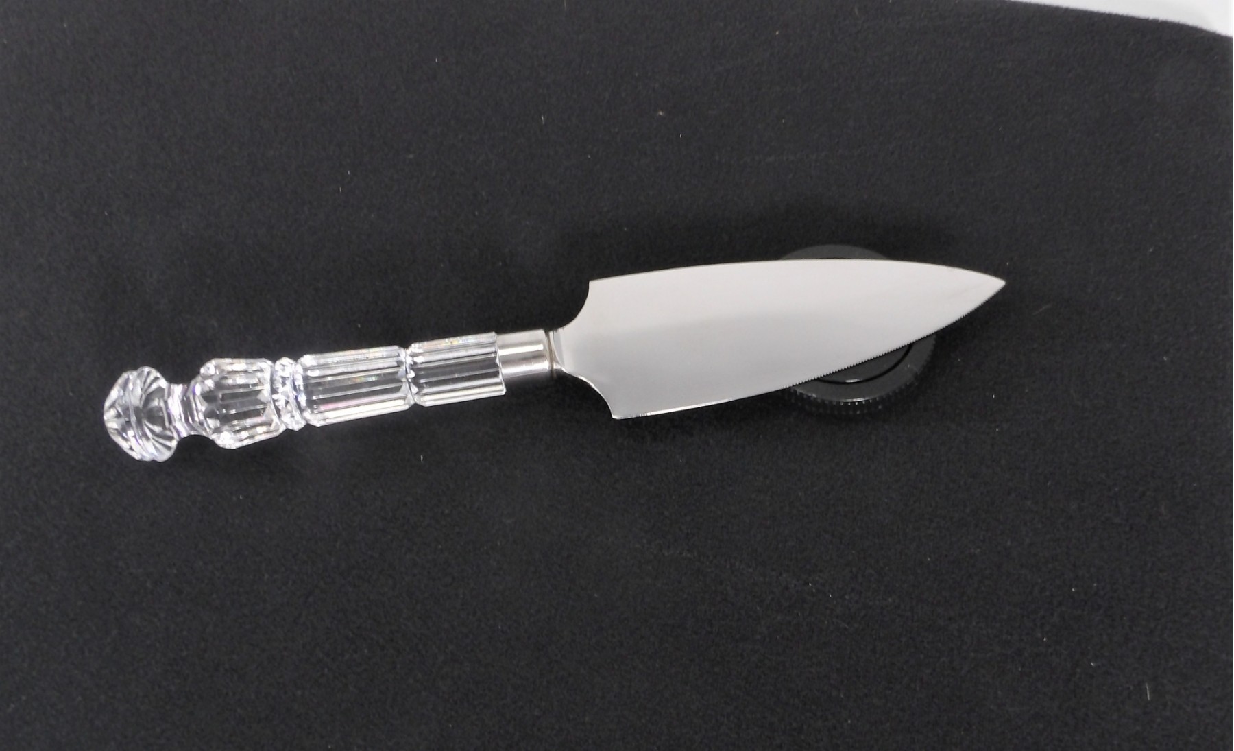 Listed is a beautiful Waterford cake knife - 11" long. Some light scratching is visible on the blade consistent with use. Condition is very good. See photos for details.