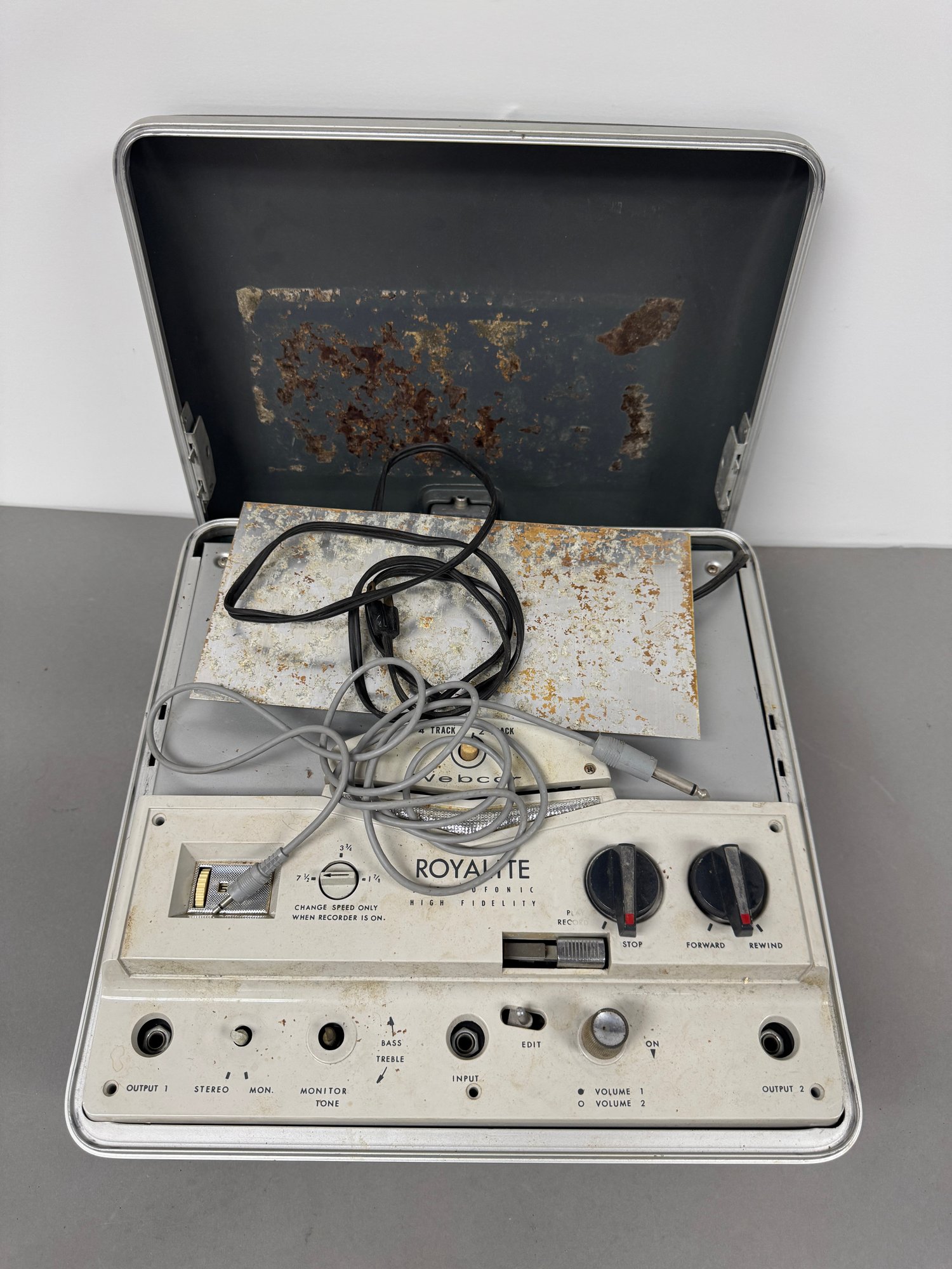 This is a vintage Webcor Royalite reel-to-reel tape recorder.