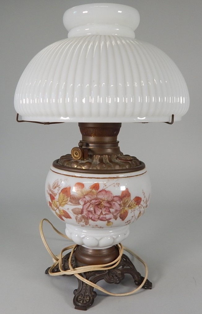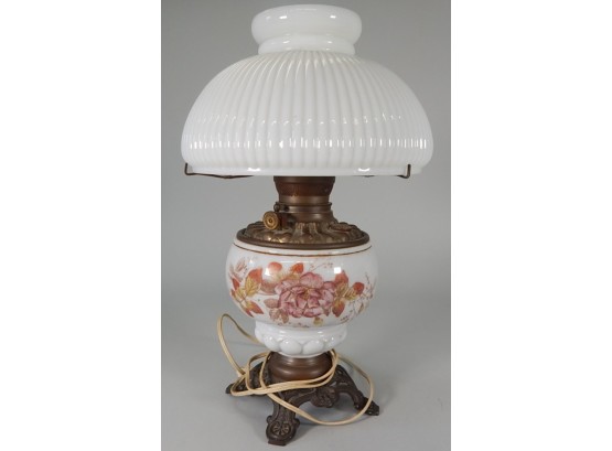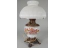 This lamp is in working condition. Decorative flowers on the base.