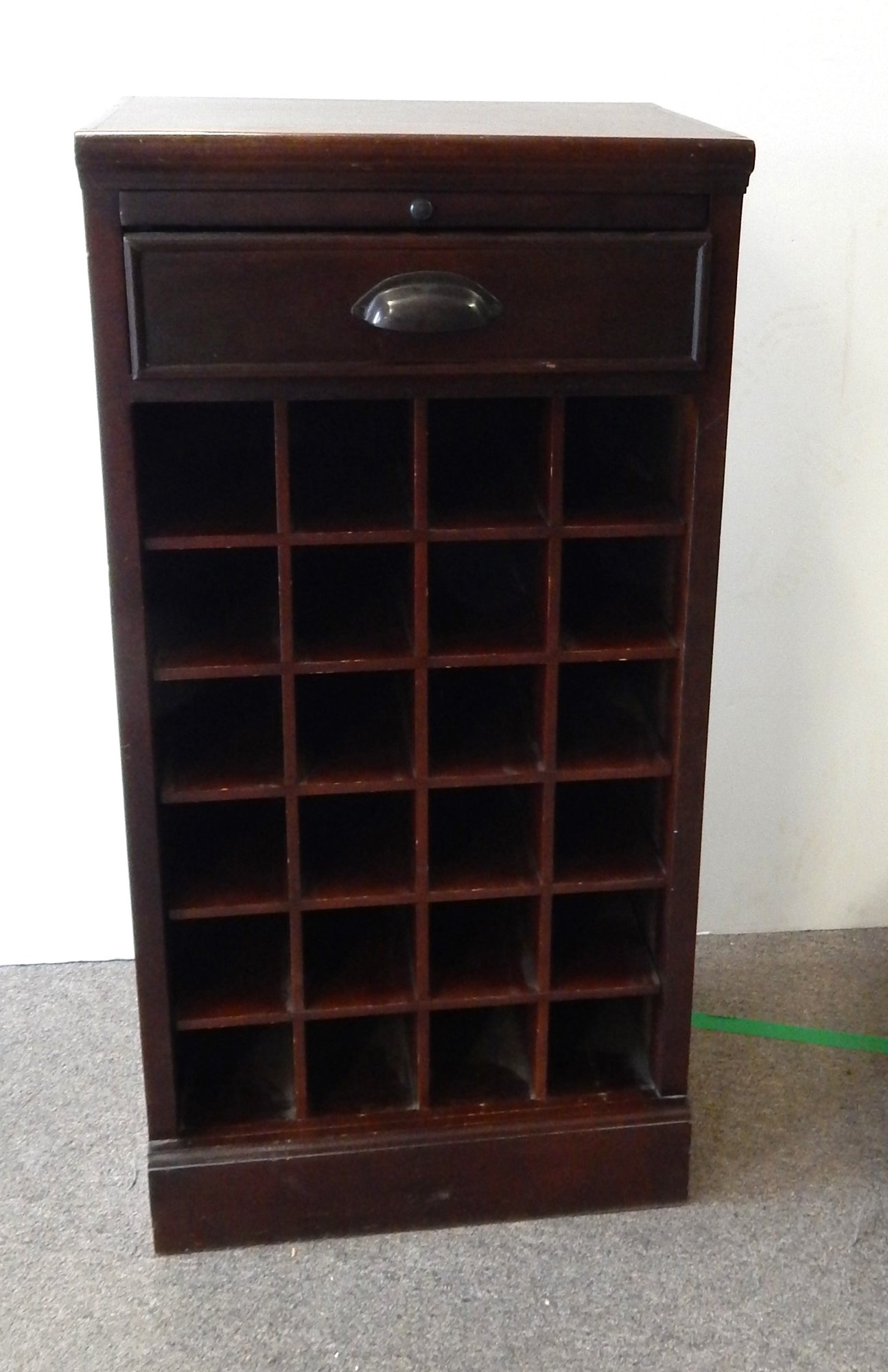 Wine tasting table with wine bottle storage measures 18"w x 13.5"d x 36"h