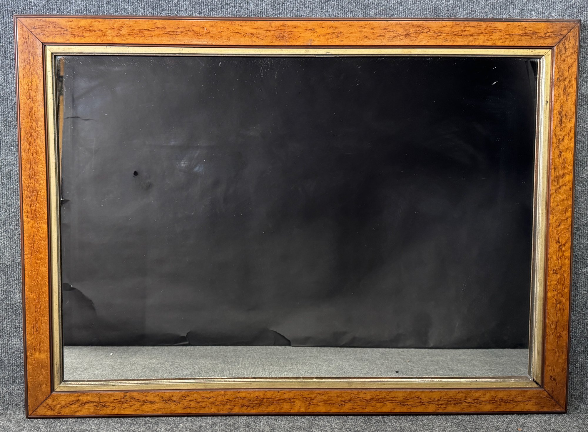 Rectangular mirror with a wood frame. Dimensions are approximately 27 x 38 inches.