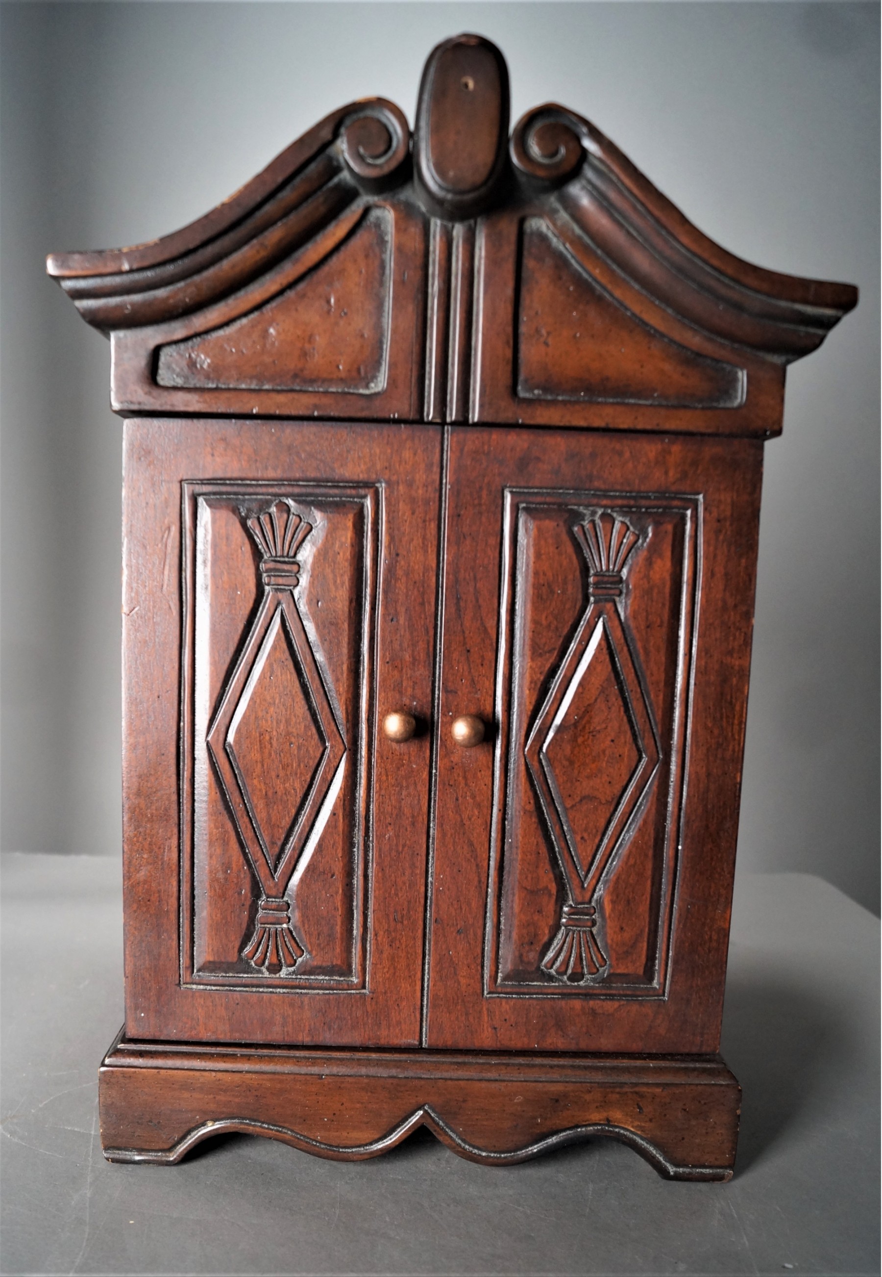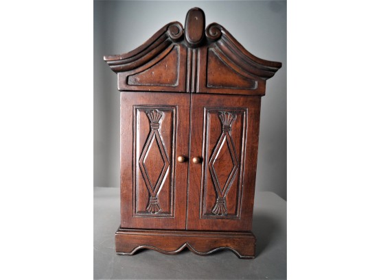 Listed is a humidor measuring 11.5"w x 17"h x 10.25d. It has 4 inner drawers and a compartment at the top for storing a hygrometer and drying instrument - both included. Condition is excellent. See photos for details.