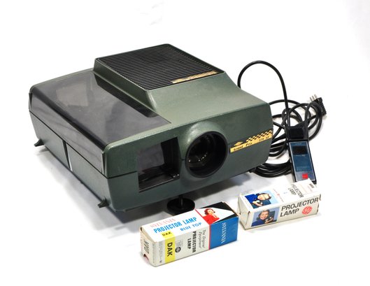 Sawyer Grand Prix 570R Slide Projector with remote and two extra lamps.