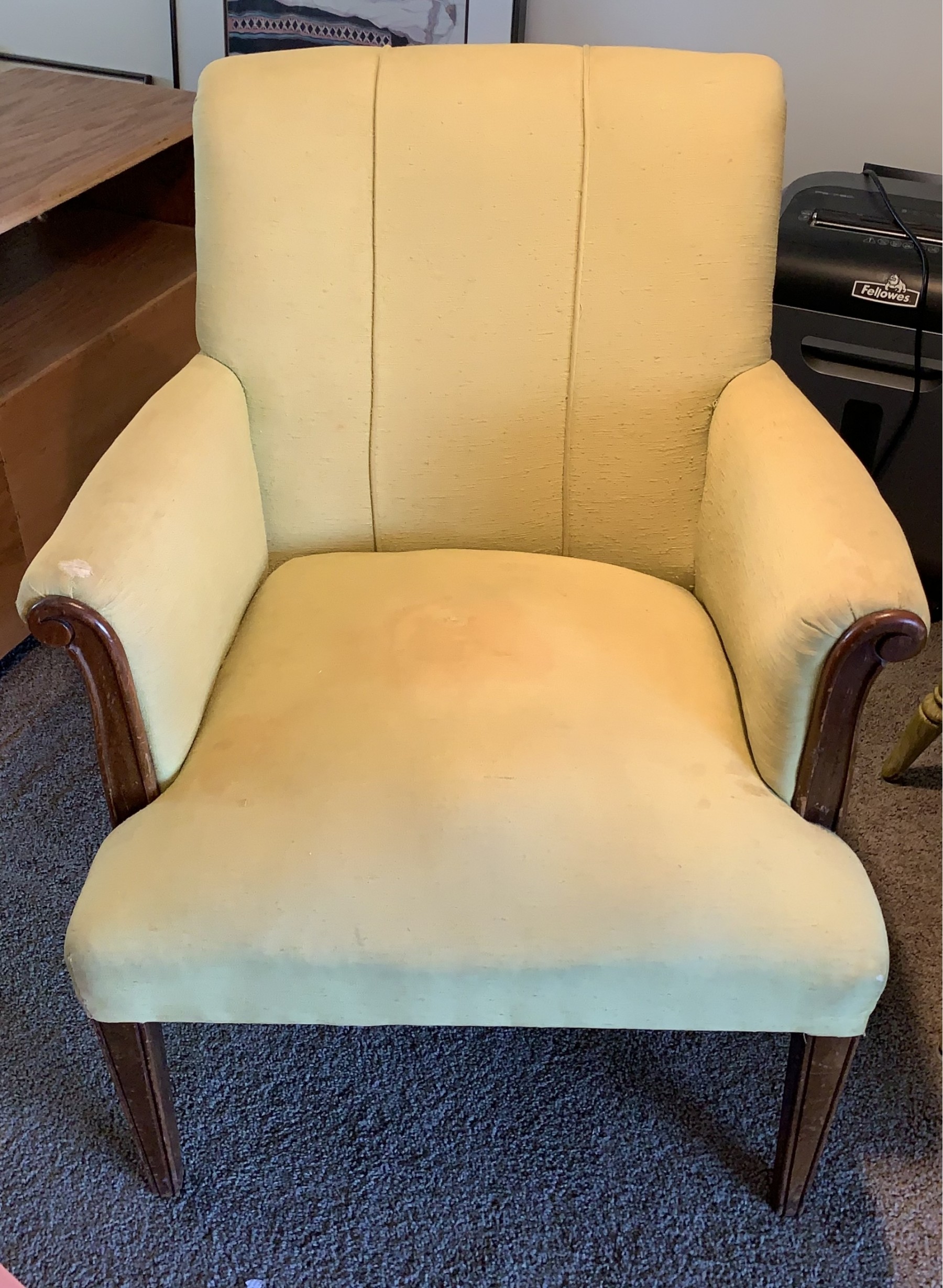 Yellow fabric, wood in good condition, needs to be reupholstered