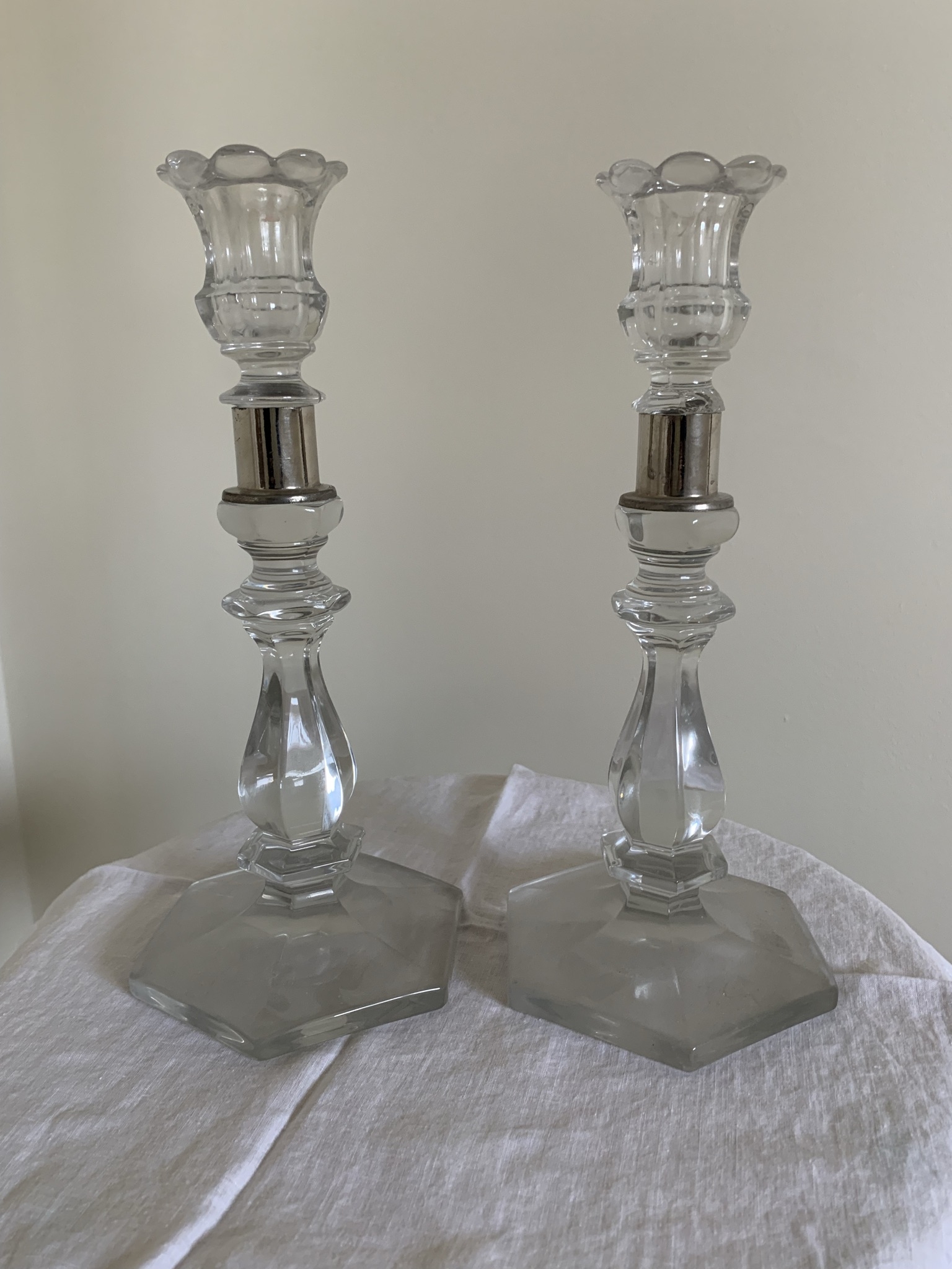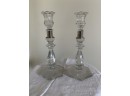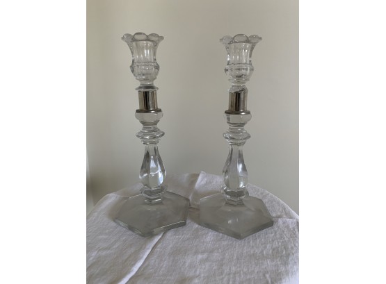 Crystal Candlesticks With Silver Bands