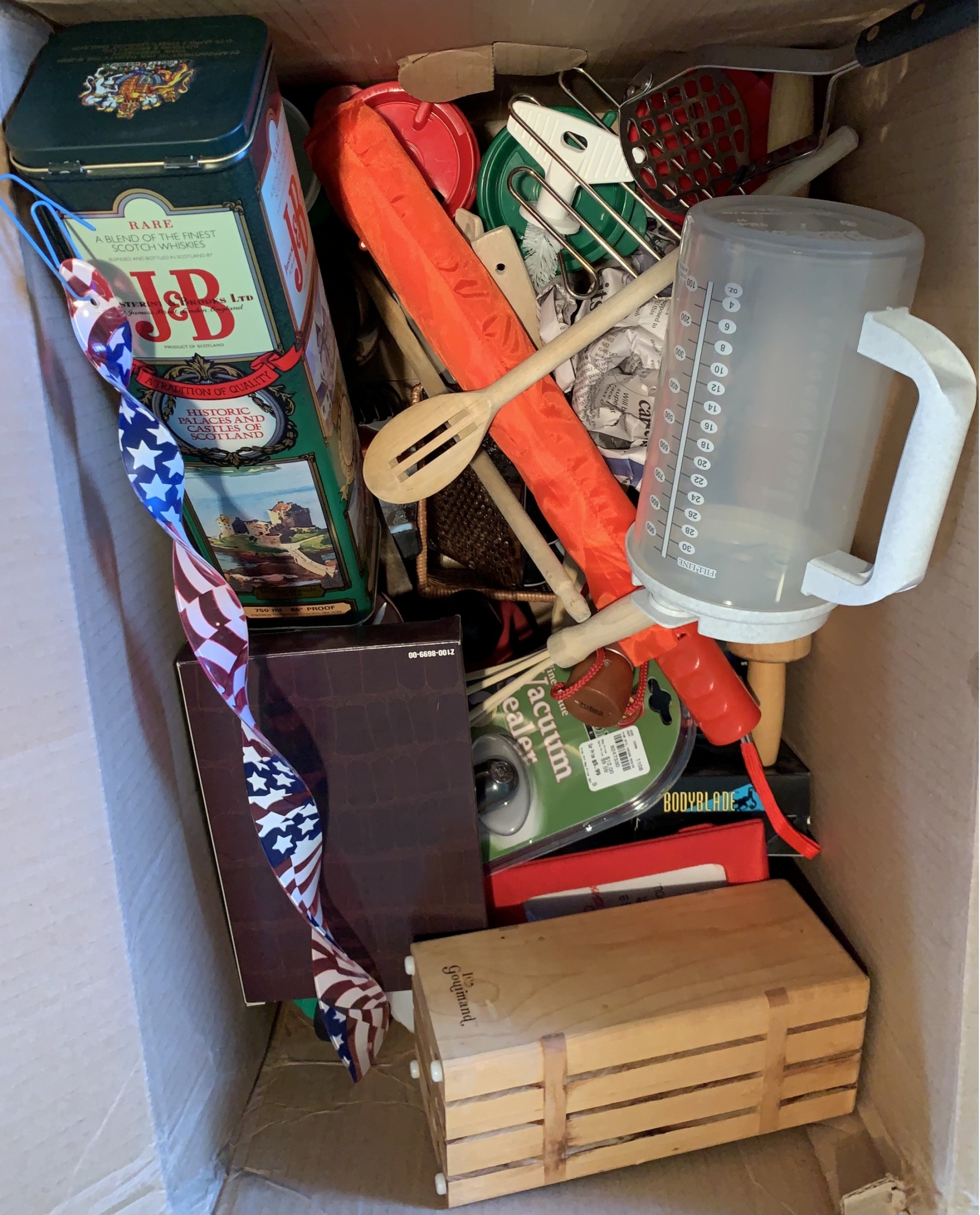 vase, kitchen utensils, vacuum wine ealer, J&B tin and more!