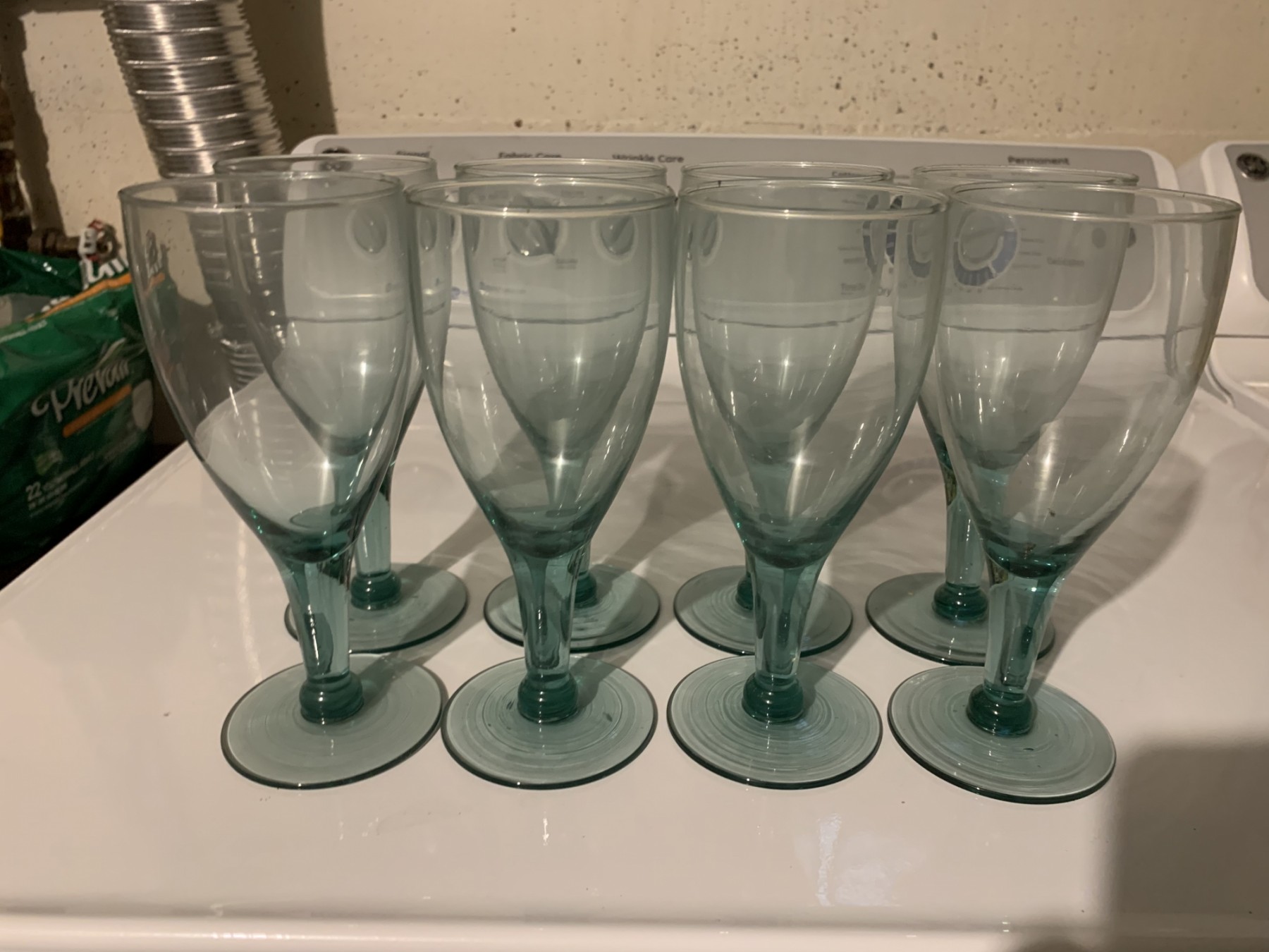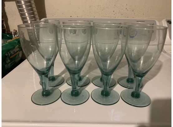 Set Of 8 Green Wine Glasses