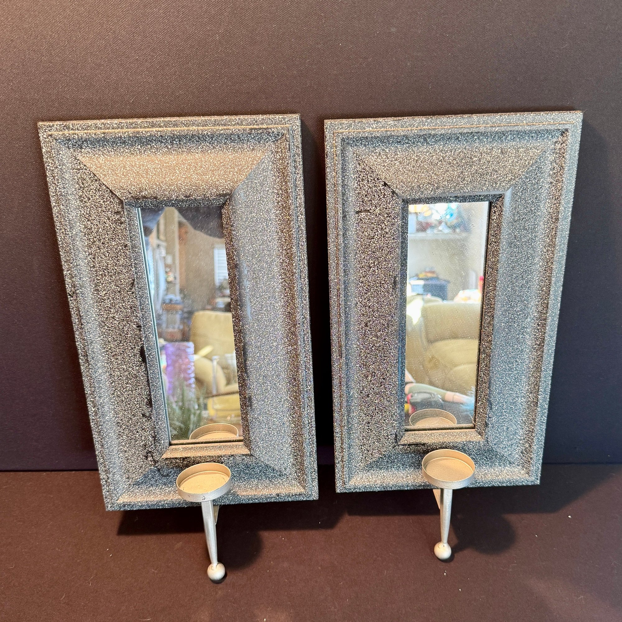Pair Of Framed Wall Mirror Candle Holders - 1 Of 2 Pair