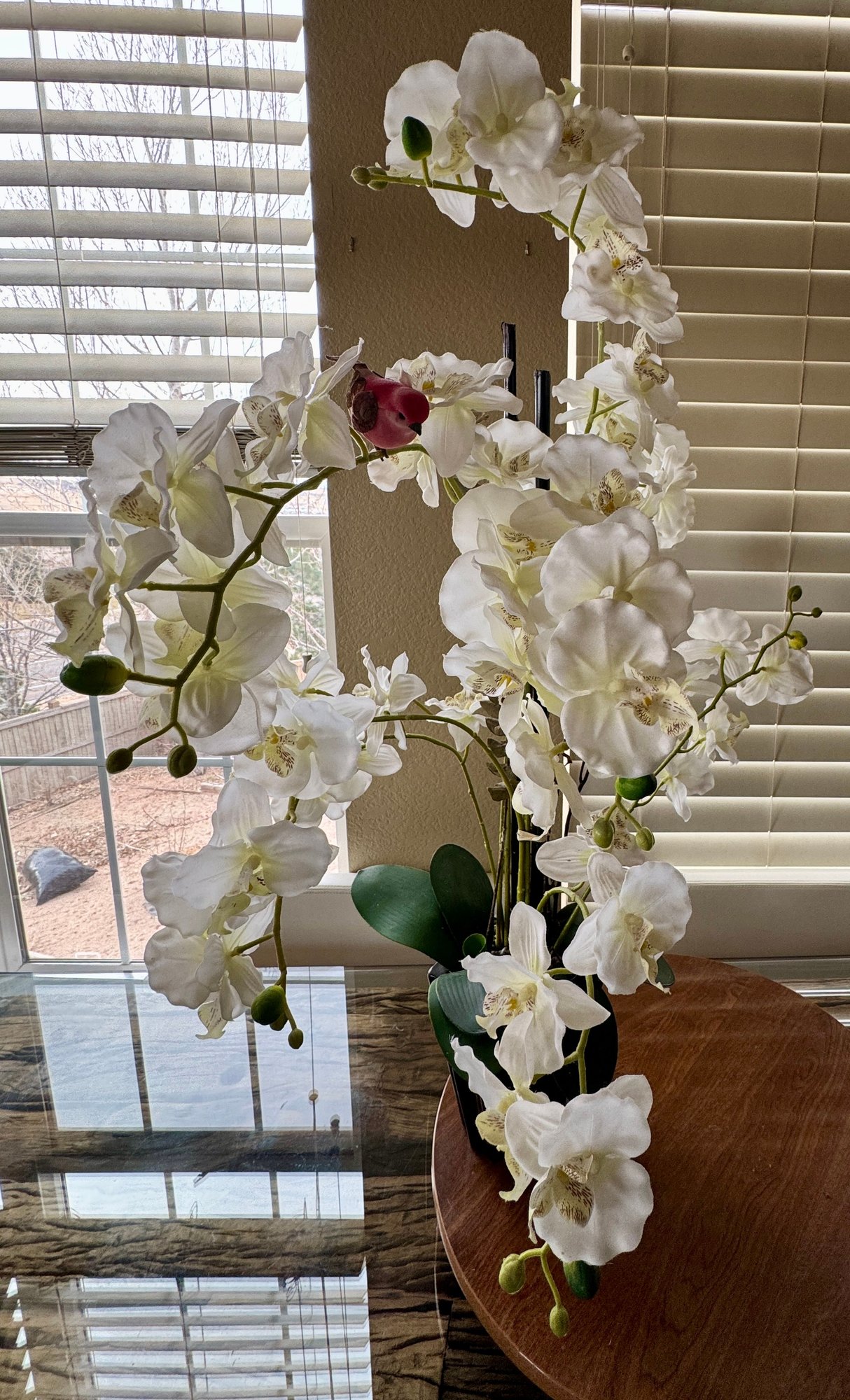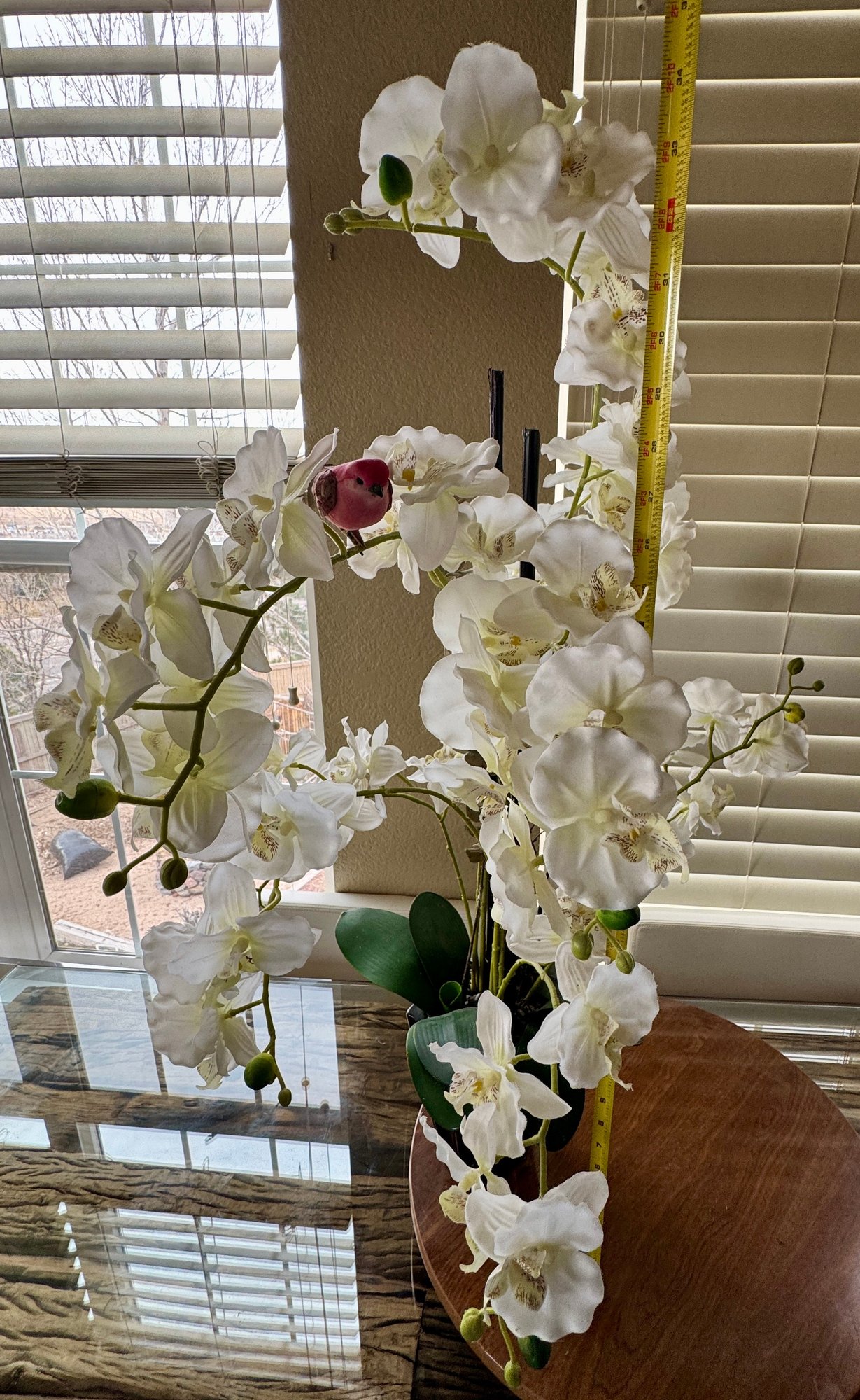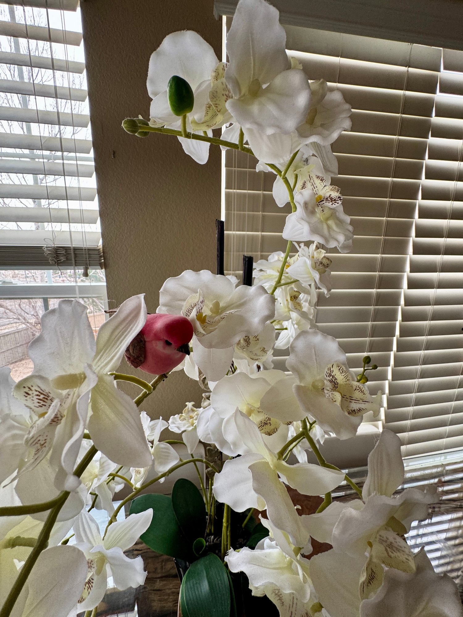 Beautiful Large Lifelike Silk Orchid With Feather Bird - No Water Needed!