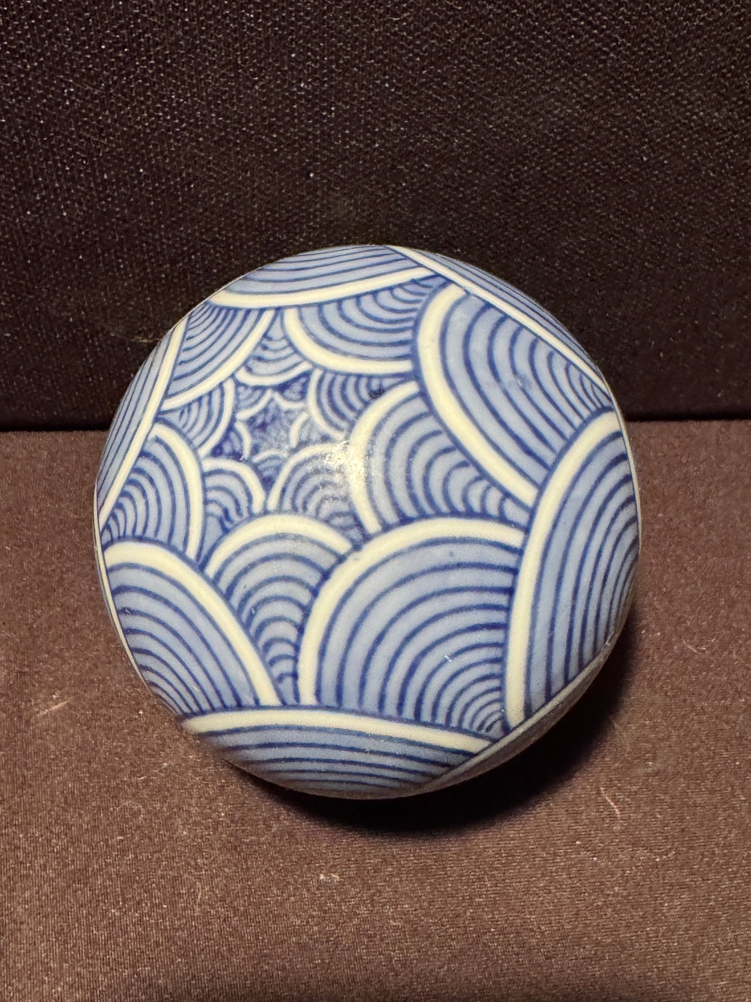 Decorative Blue And White Ceramic Orb (1 Of 2)